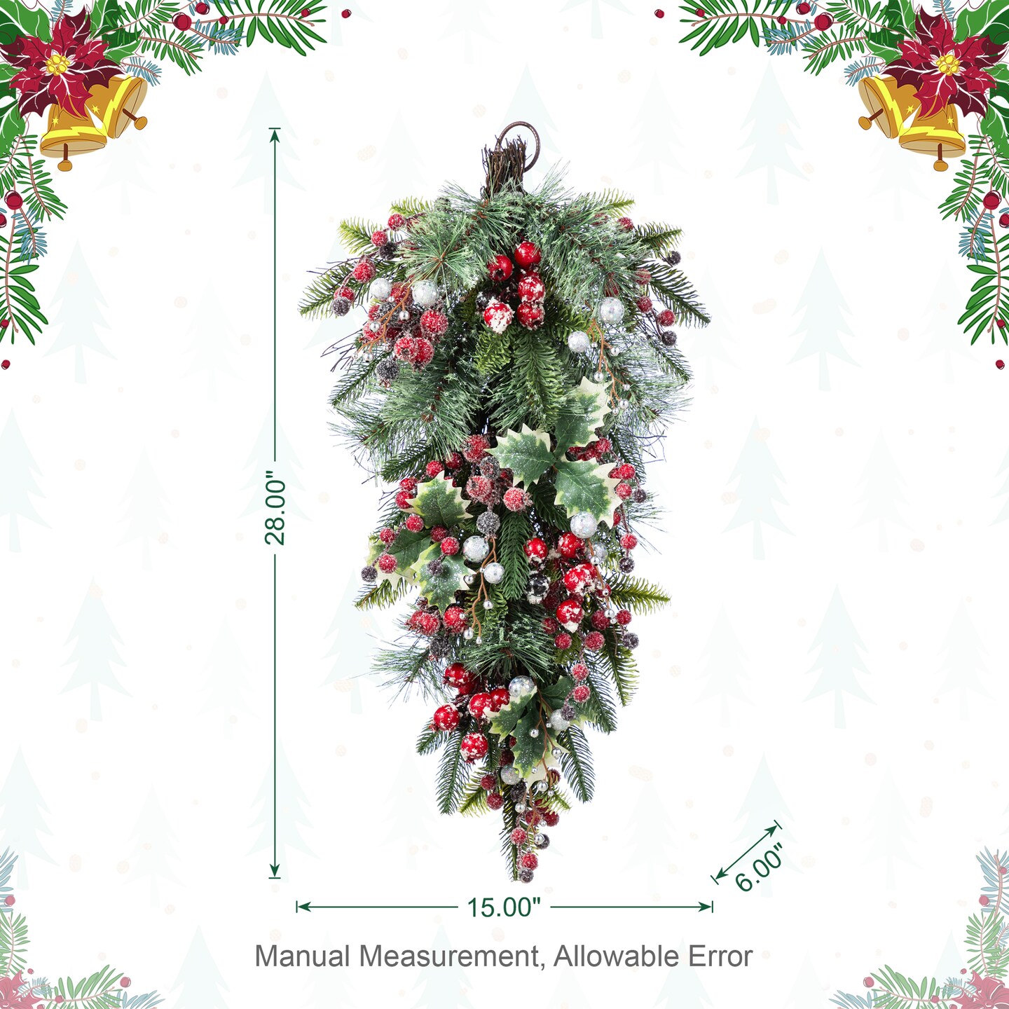 Set of 2 28"H Christmas Red Pomegranate Berry & Holy Leaf Teardrop