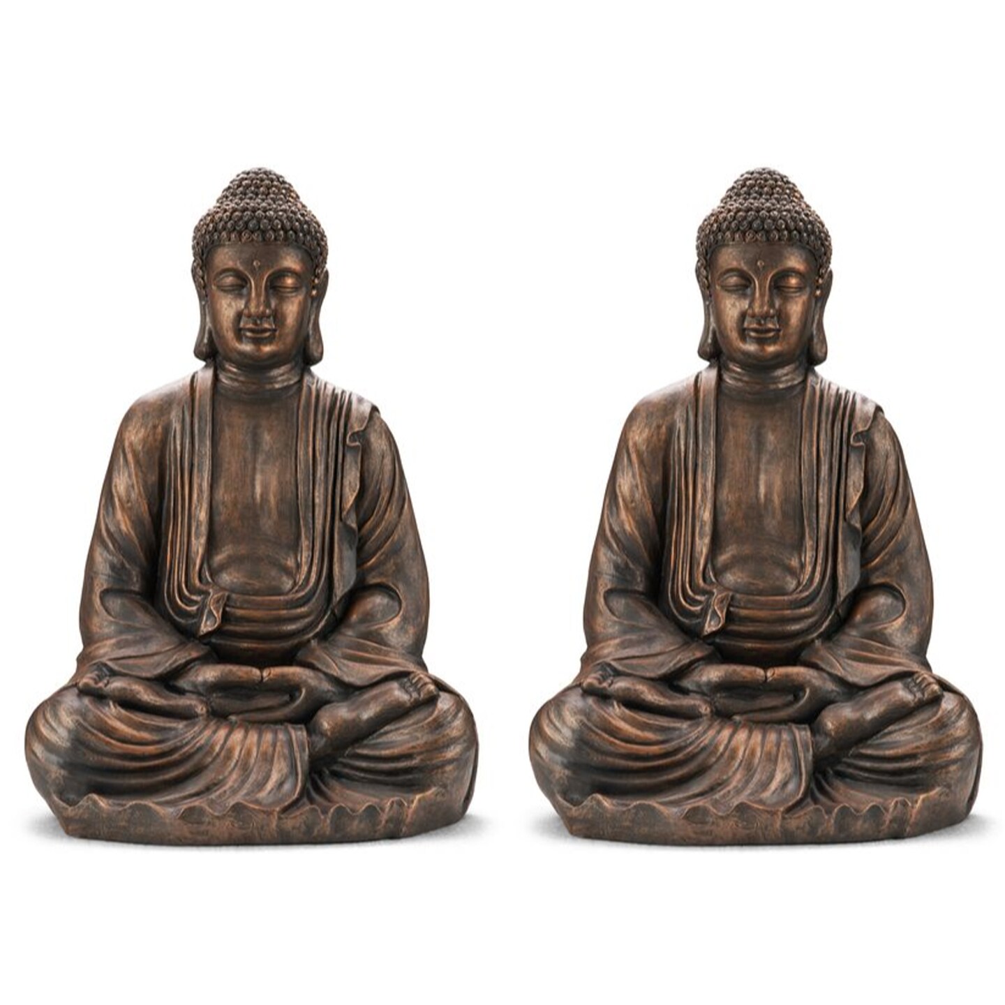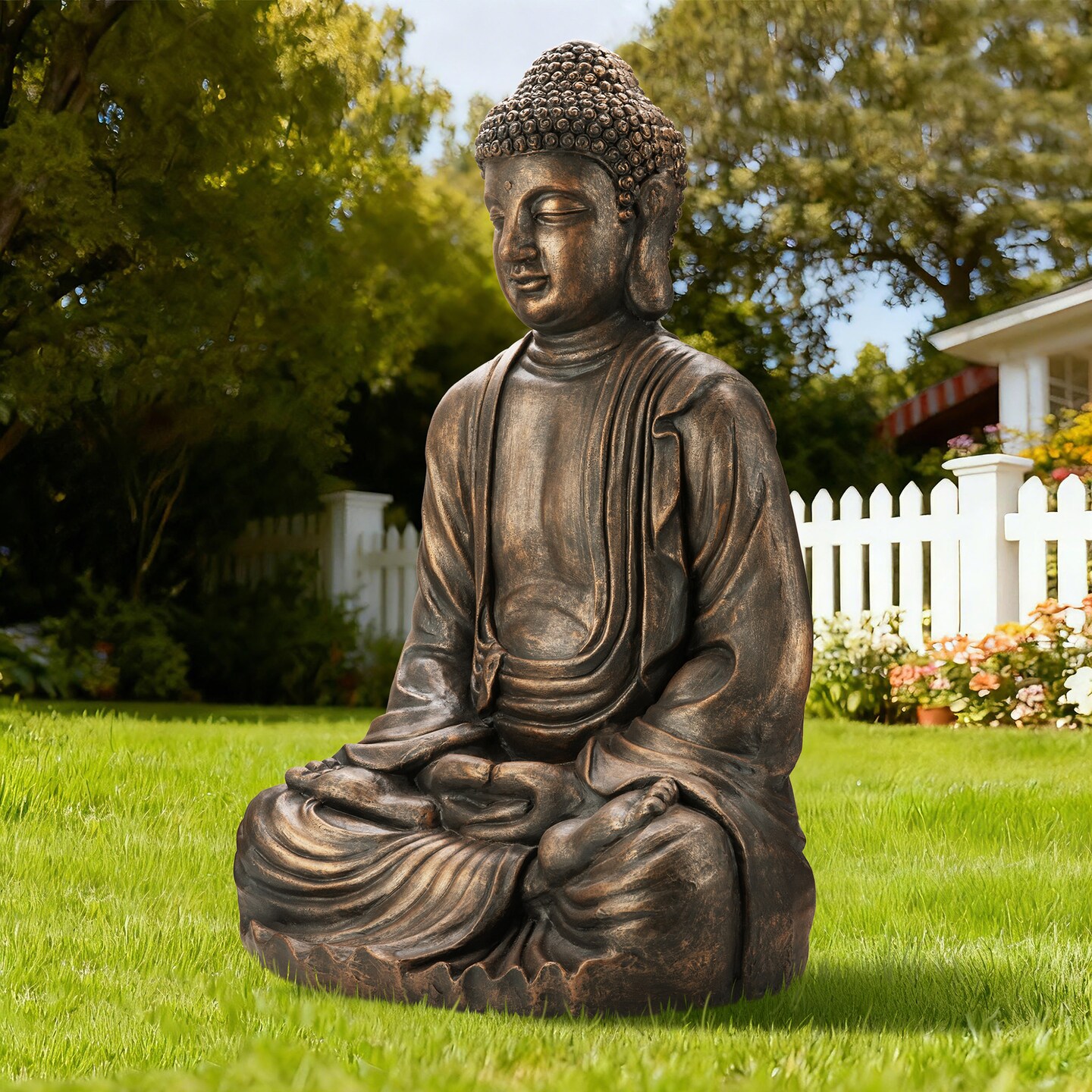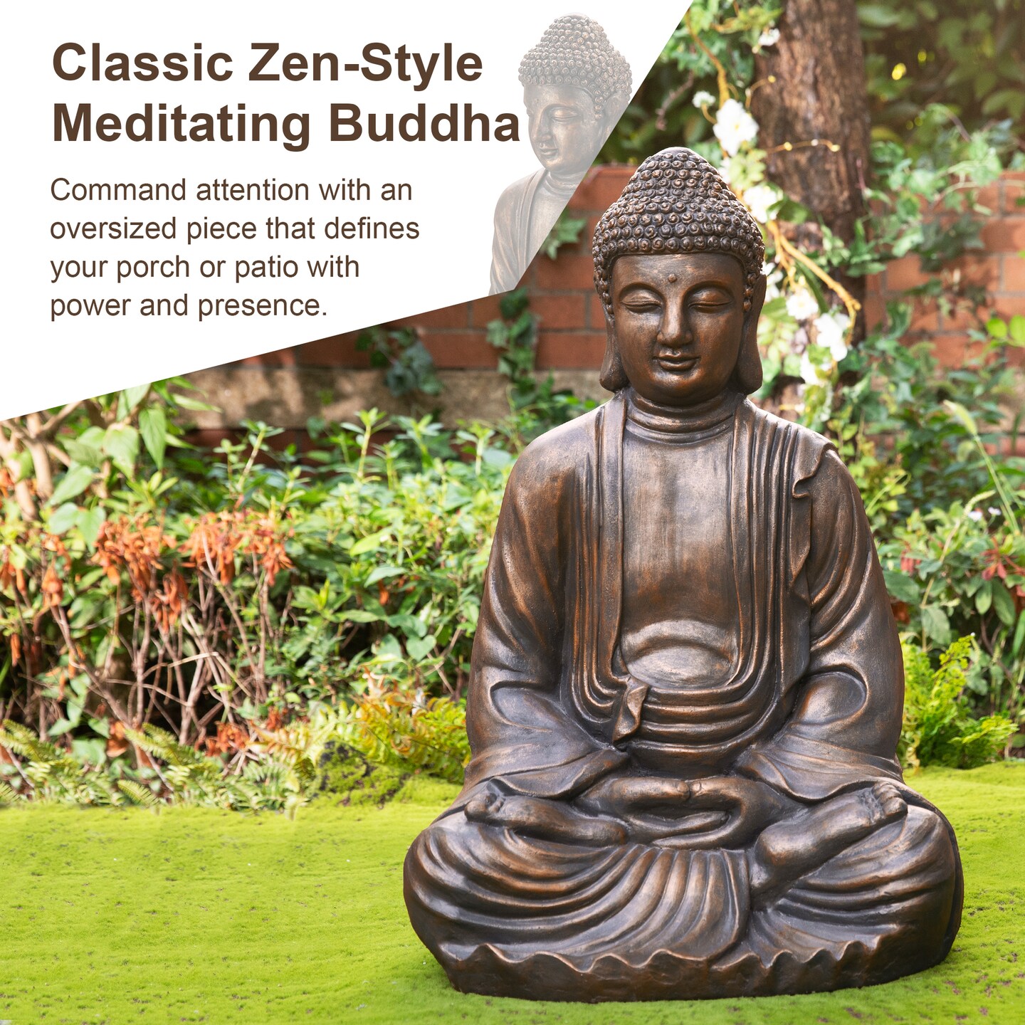 Set of 2 29.5"H Oversized MGO Bronze Meditating Buddha Statue
