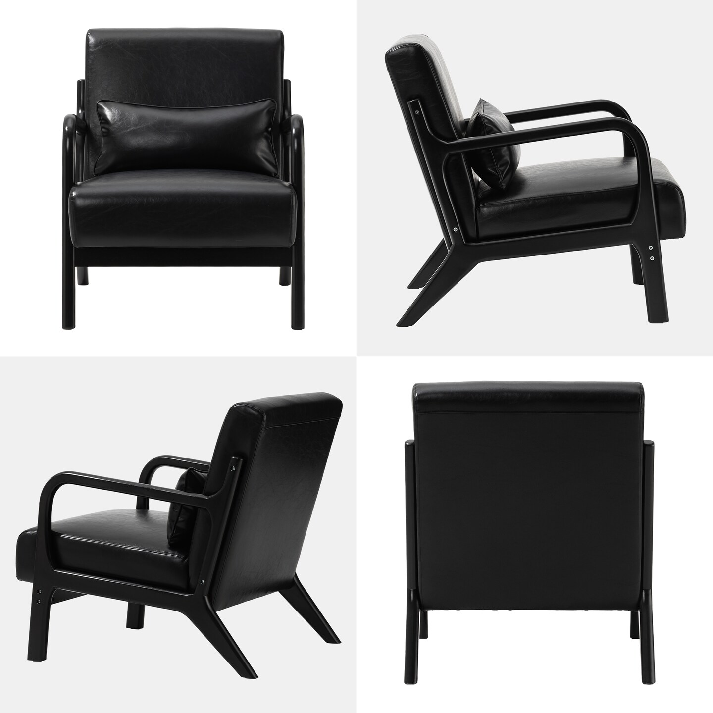 Set of 2 30.75"H Mid-Century Modern PU Leather Armchair Accent Chairs with Pillow