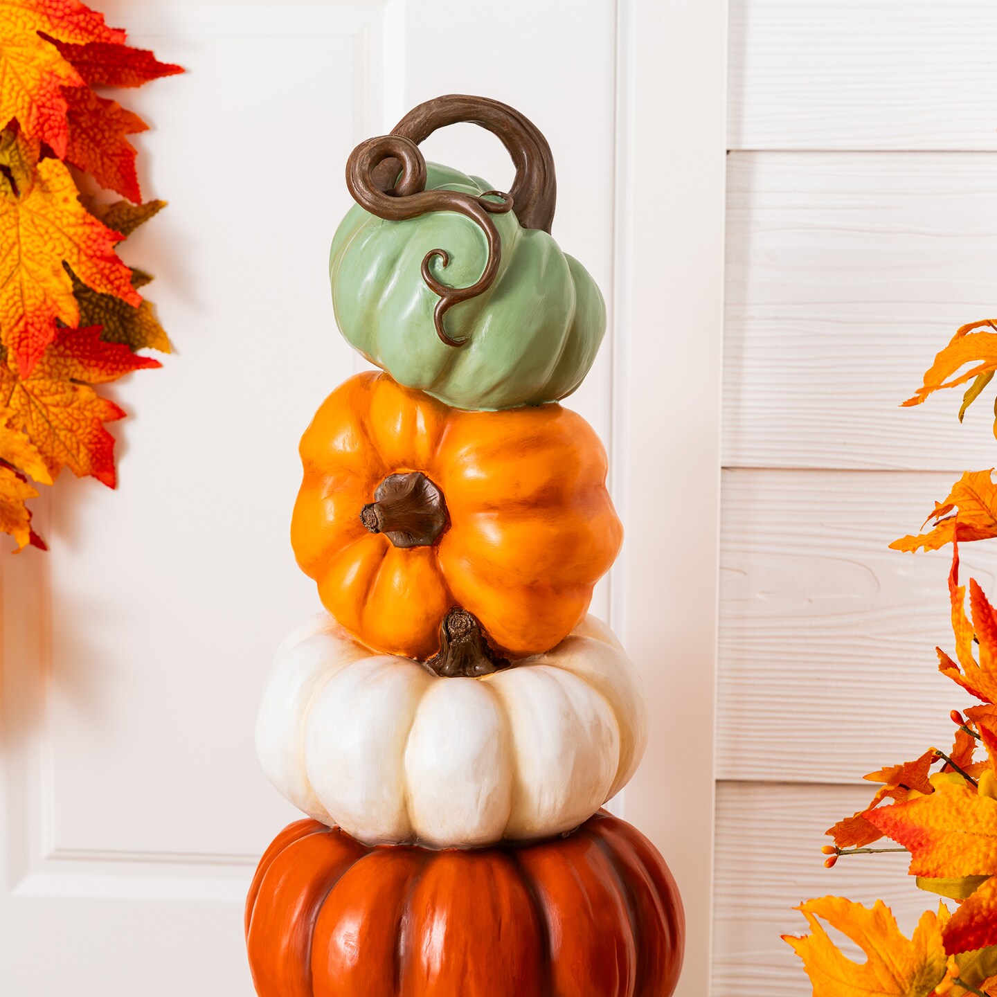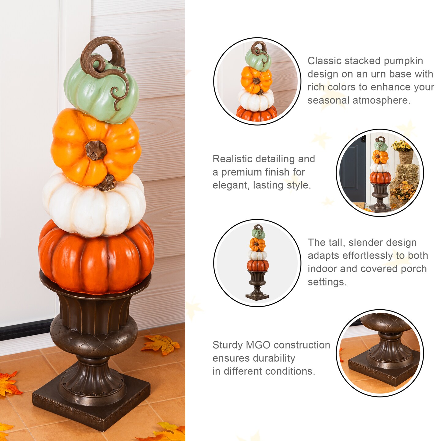 Set of 2 30.7"H Fall MGO Stacked Pumpkin with Brown Urn Porch Decor