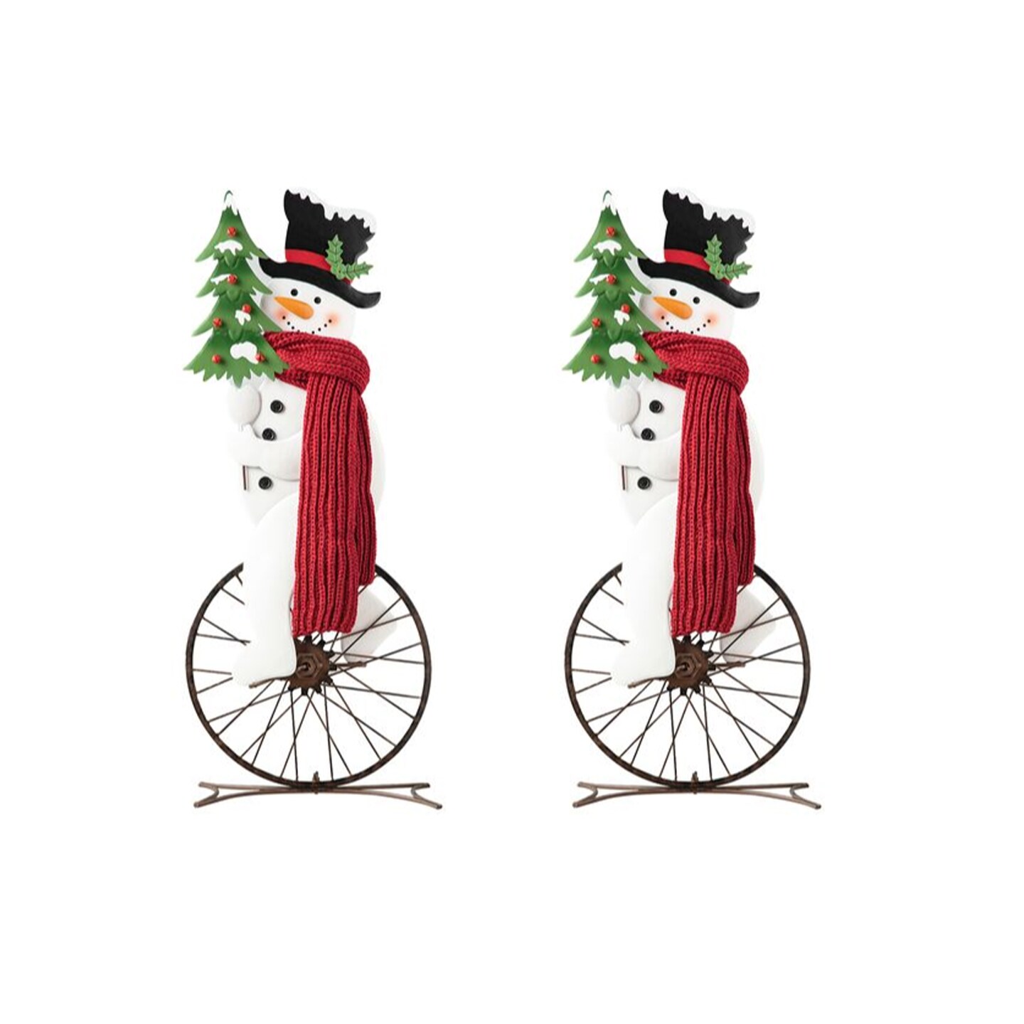 Set of 2 32'''H/34''H Christmas Metal Bike Wheel Snowman Porch Decor