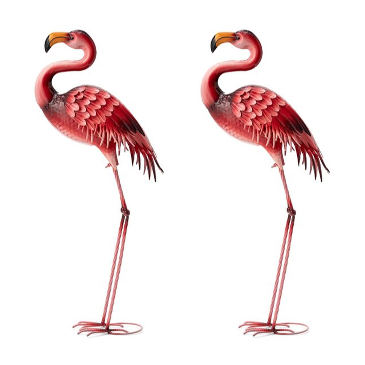 Set of 2 35.25"H Metal Standing Flamingo Garden Statue with Stakes (KD)Metal Thickness: 0.35mm