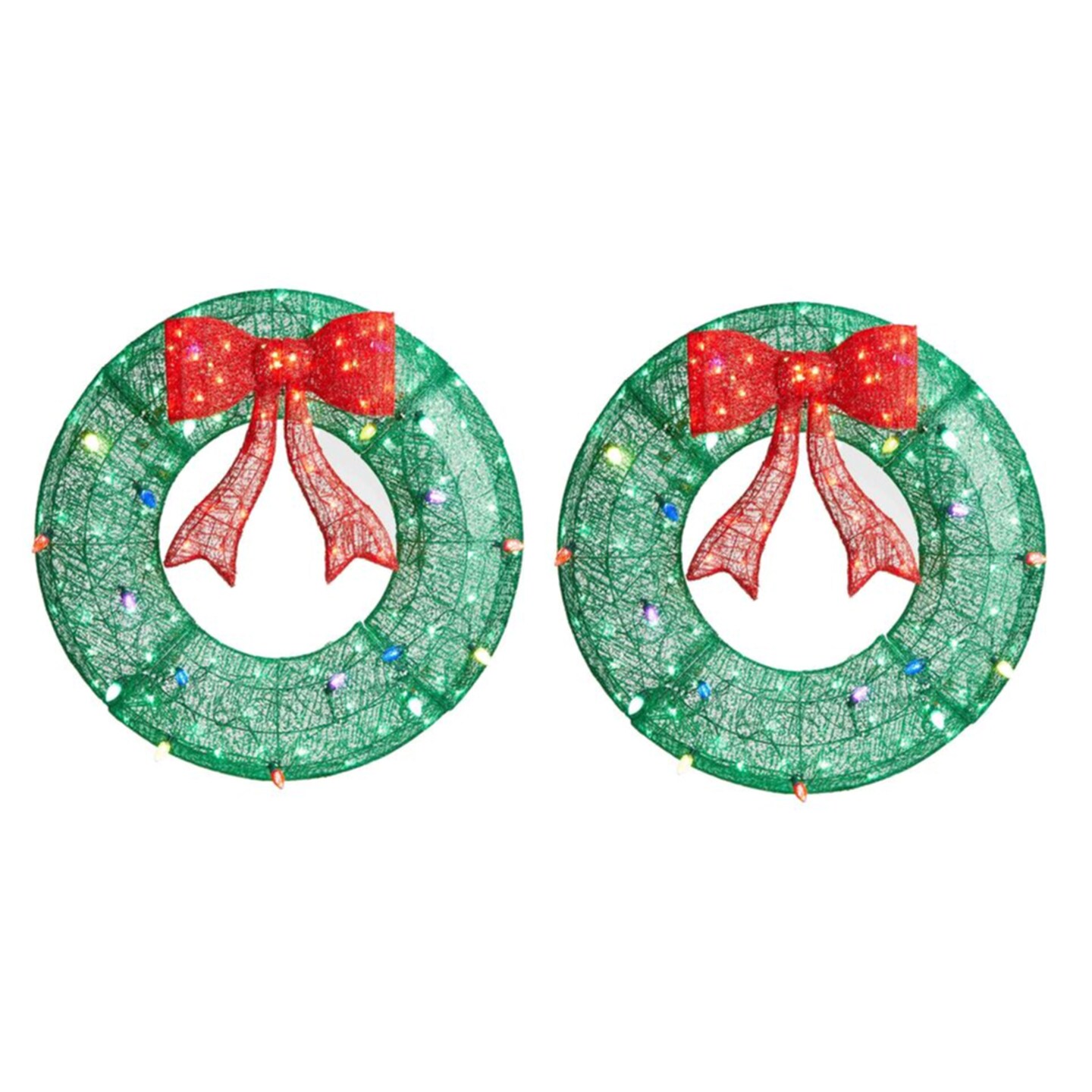 Set of 2 35.5"H Lighted Christmas 3D Mesh Wreath with Colorful Bulbs and 130 Green LED Lights