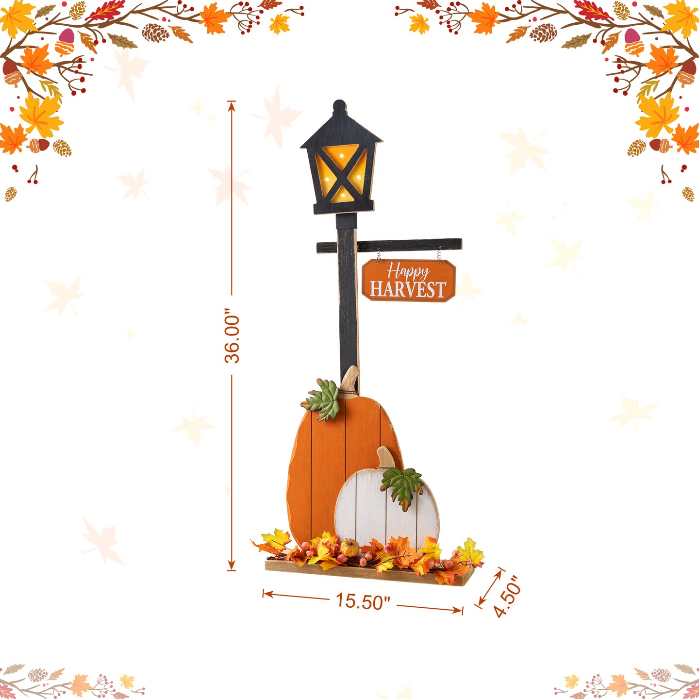 Set of 2 36"H Fall Lighted Wooden Pumpkin Lamp Post Porch Decor w/Timer(KD)