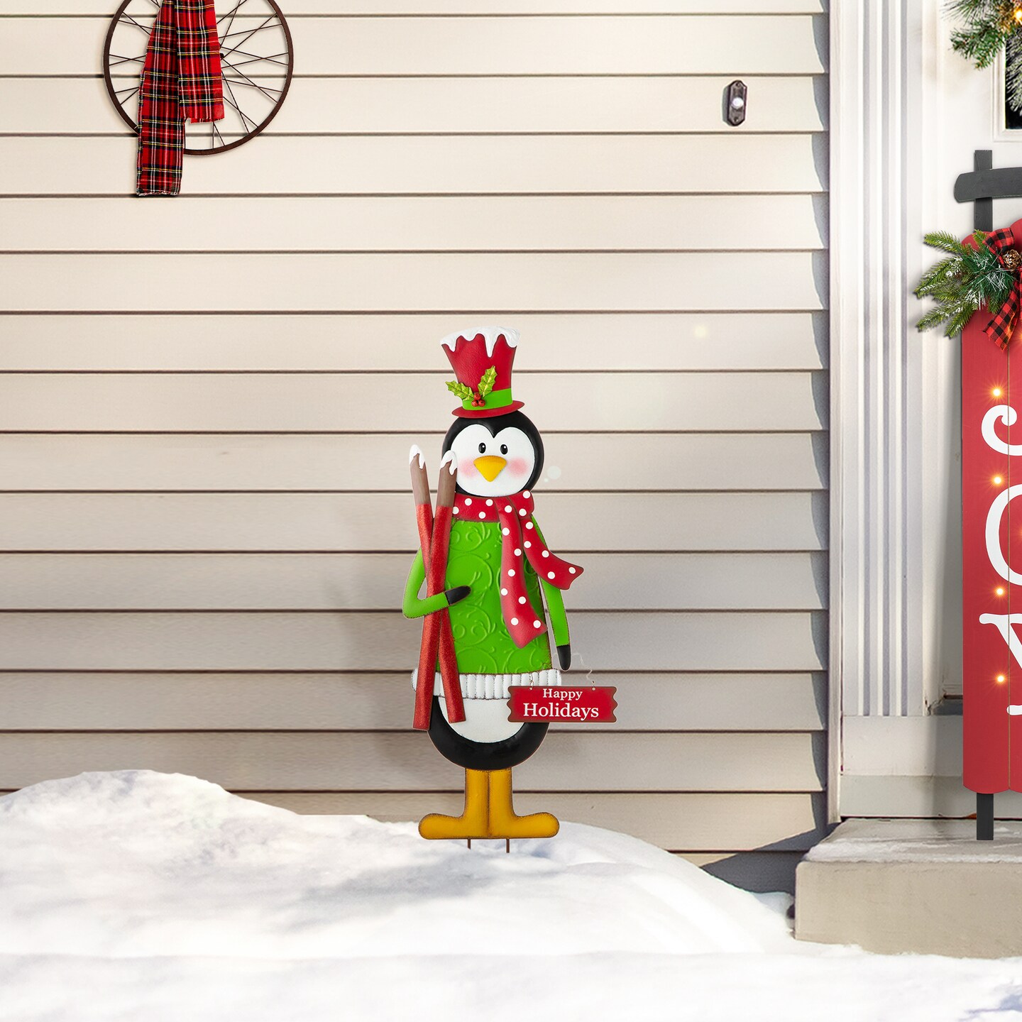 Set of 2 36"H Metal Nutcracker/Penguin Yardstake or Standing Décor or Wall Décor (Three Function)