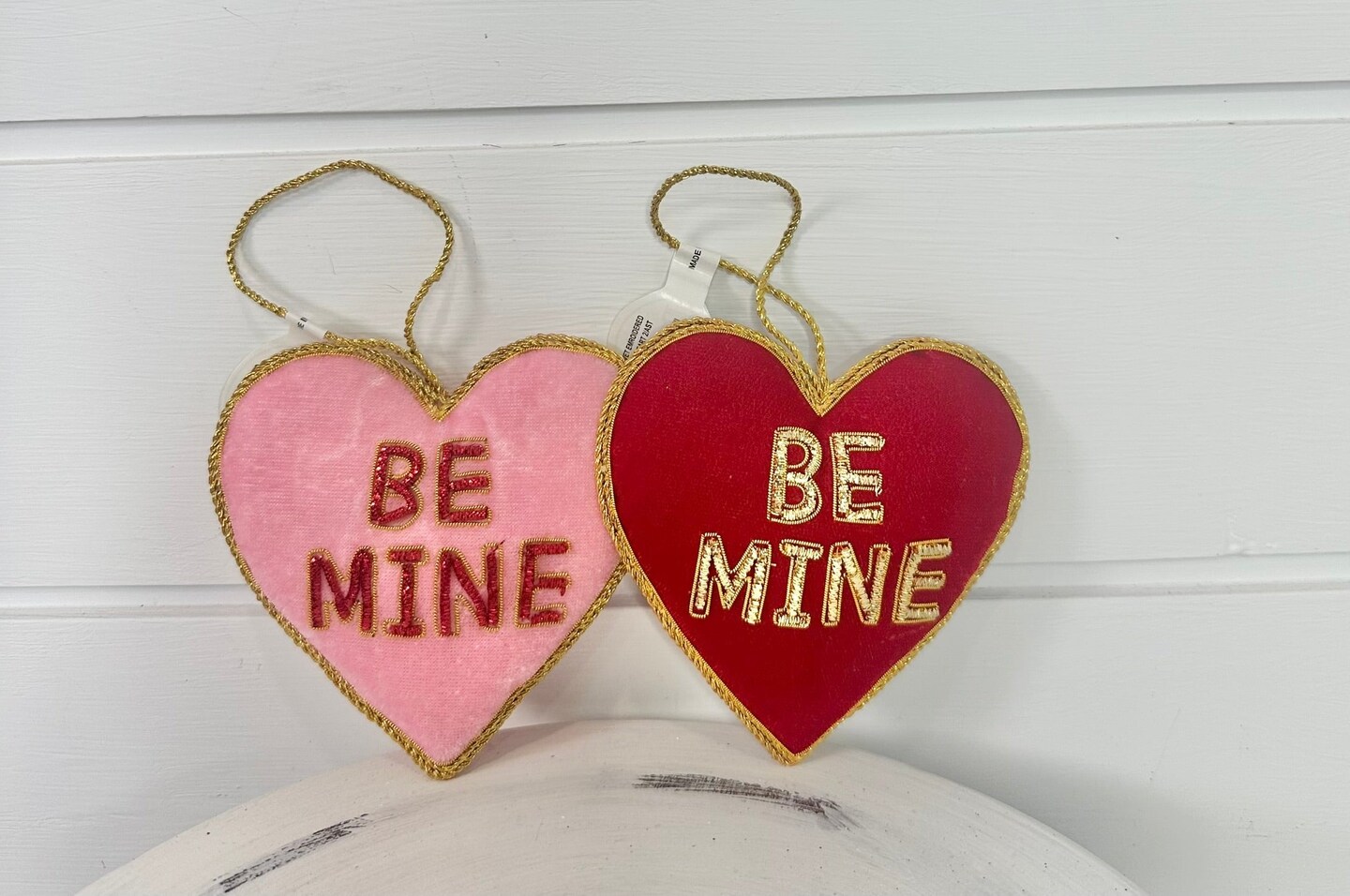Set of 2- 4" Velvet 'Be Mine' Hearts - Embroidered in Pink/Red/Gold and Red/Gold - Valentine's Day Decor - TCT Crafts - (MTX71533)