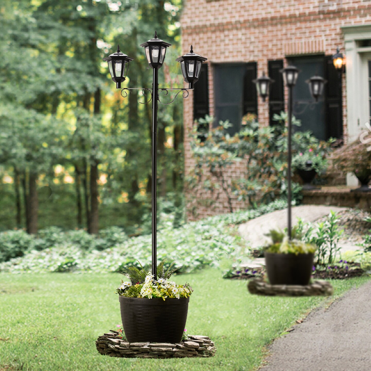 Set of 2 74"H Solar Three Head Street Light with a Round Planter Pot