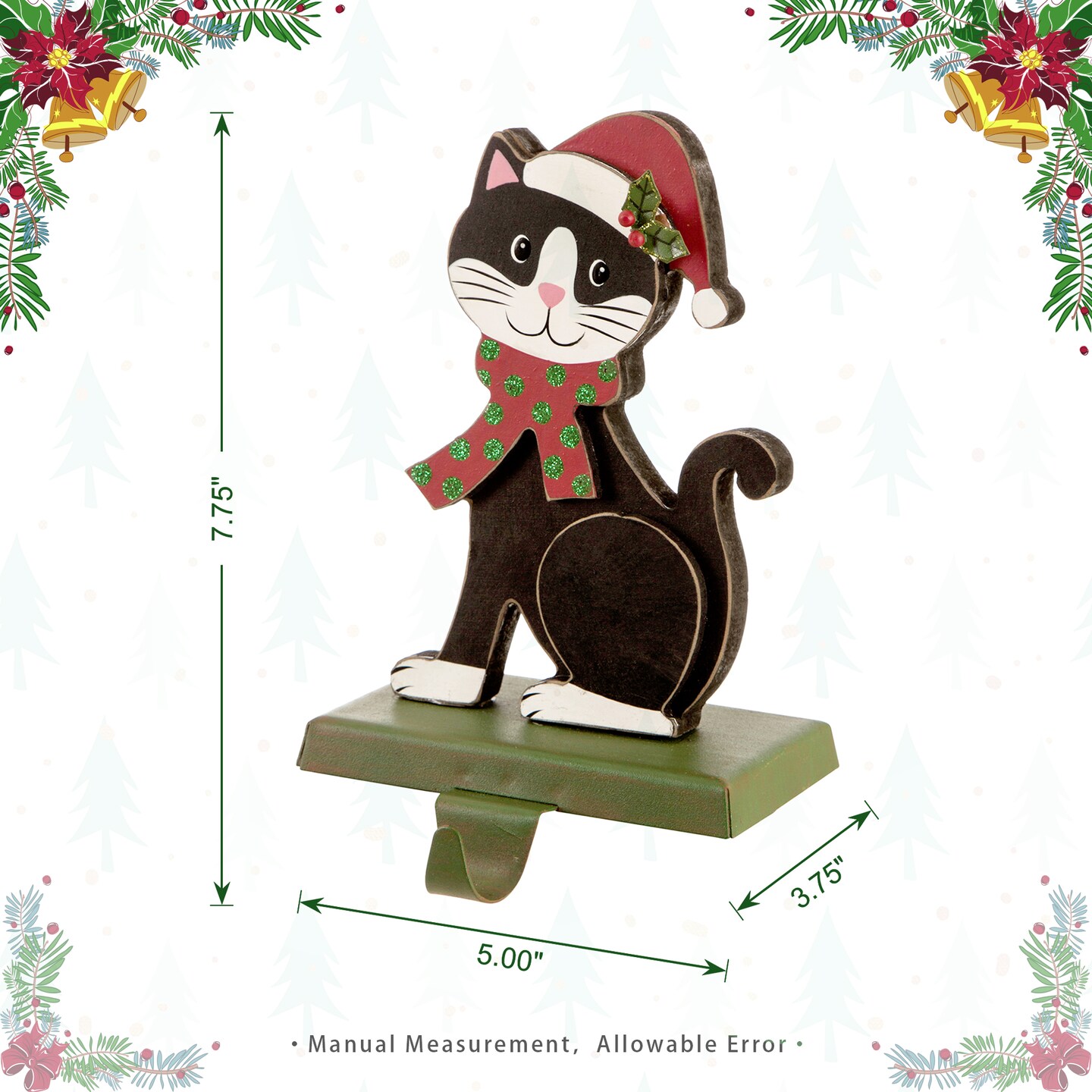 Set of 2 7.76"H Wooden/Metal Cat Stocking Holder