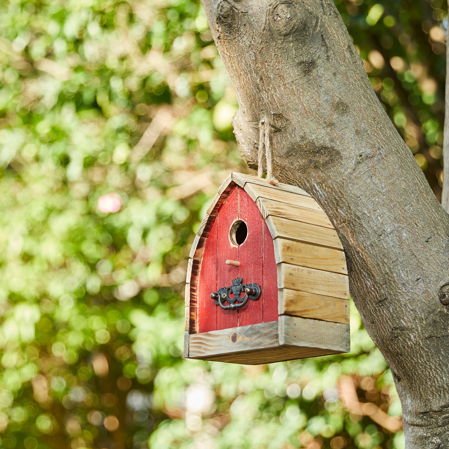 Set of 2 8.5"H Unique Arched Roof Barn Distressed Solid Wood Decorative Outdoor Garden Birdhouse