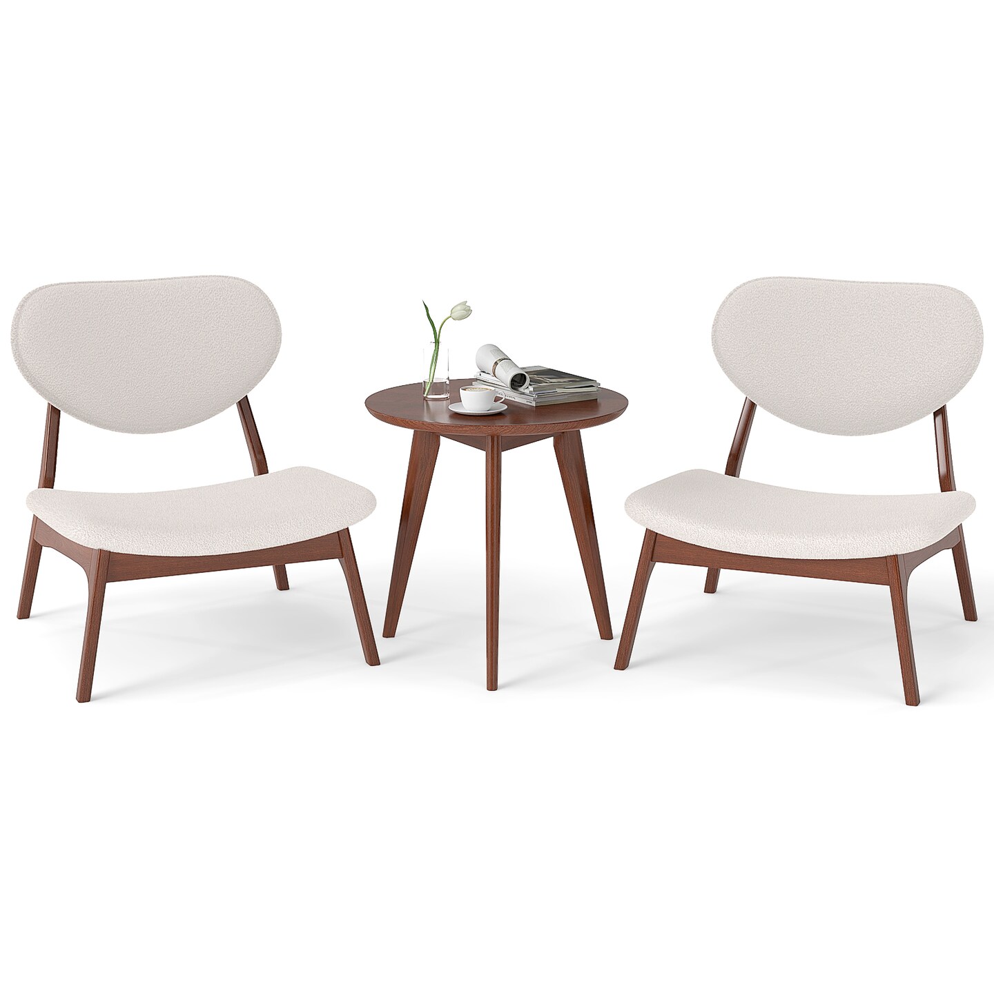 Set of 2 Accent Chairs with Side Table and Velvet Upholstery