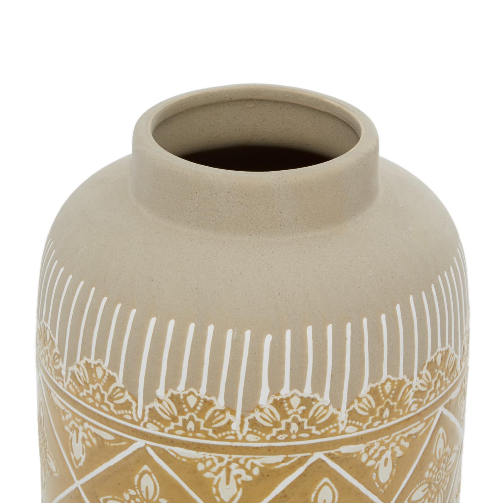 Set of 2 Beige Ceramic Boho Style Vase 9", 11"