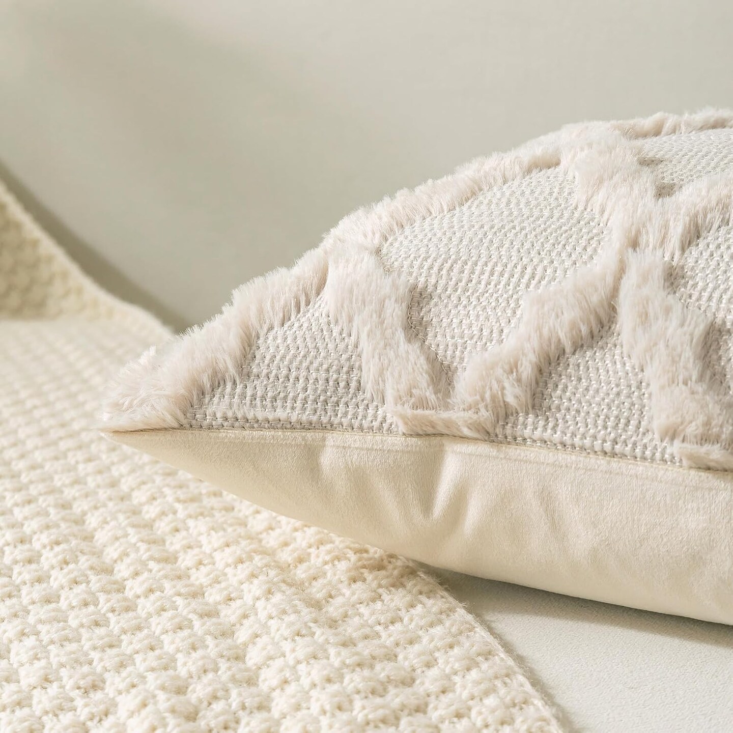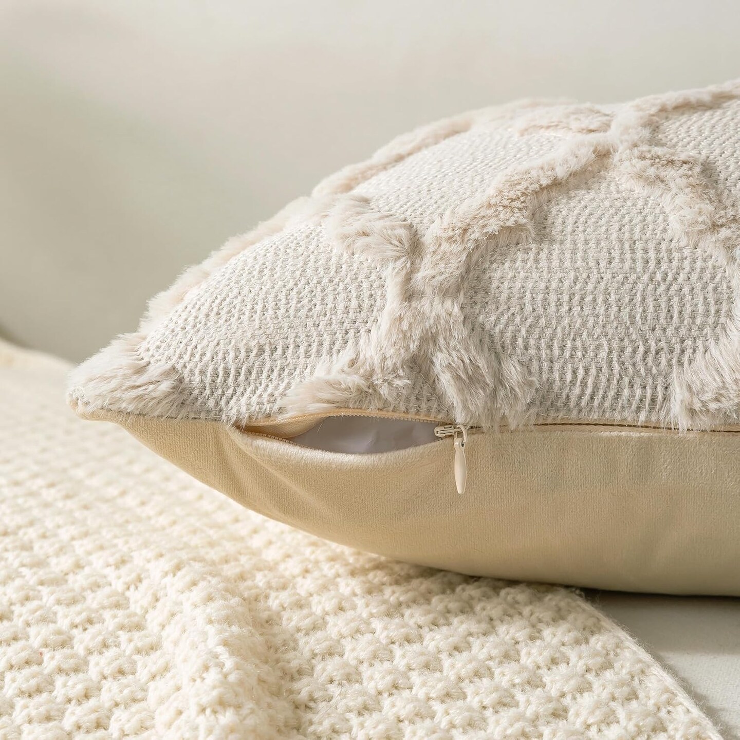 Set of 2 Beige Morrocan Decorative Pillow Covers 18x18 Inch (Beige)