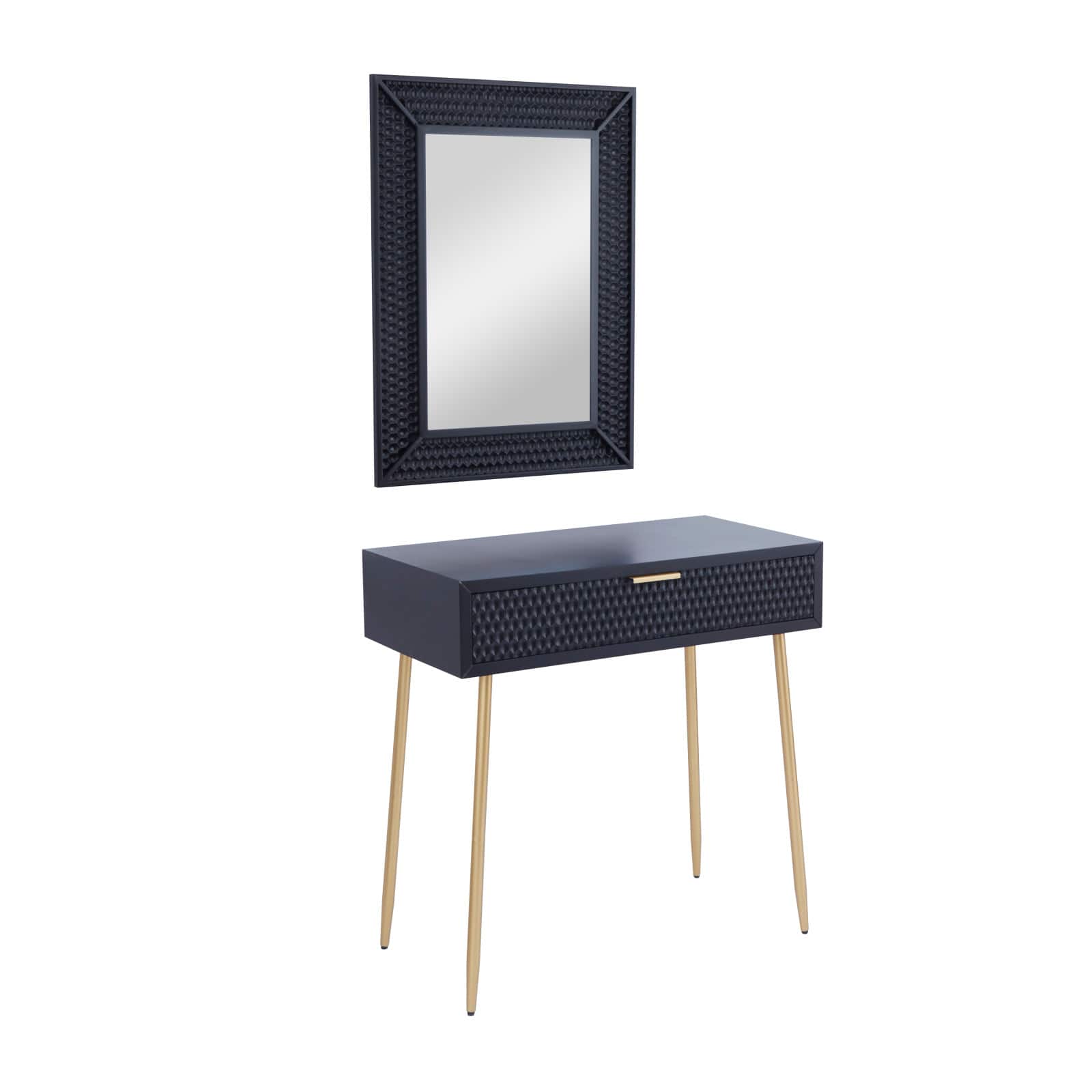 Set of 2" Black Wood Contemporary Console Table with Mirror, 31" x 31" x 16"