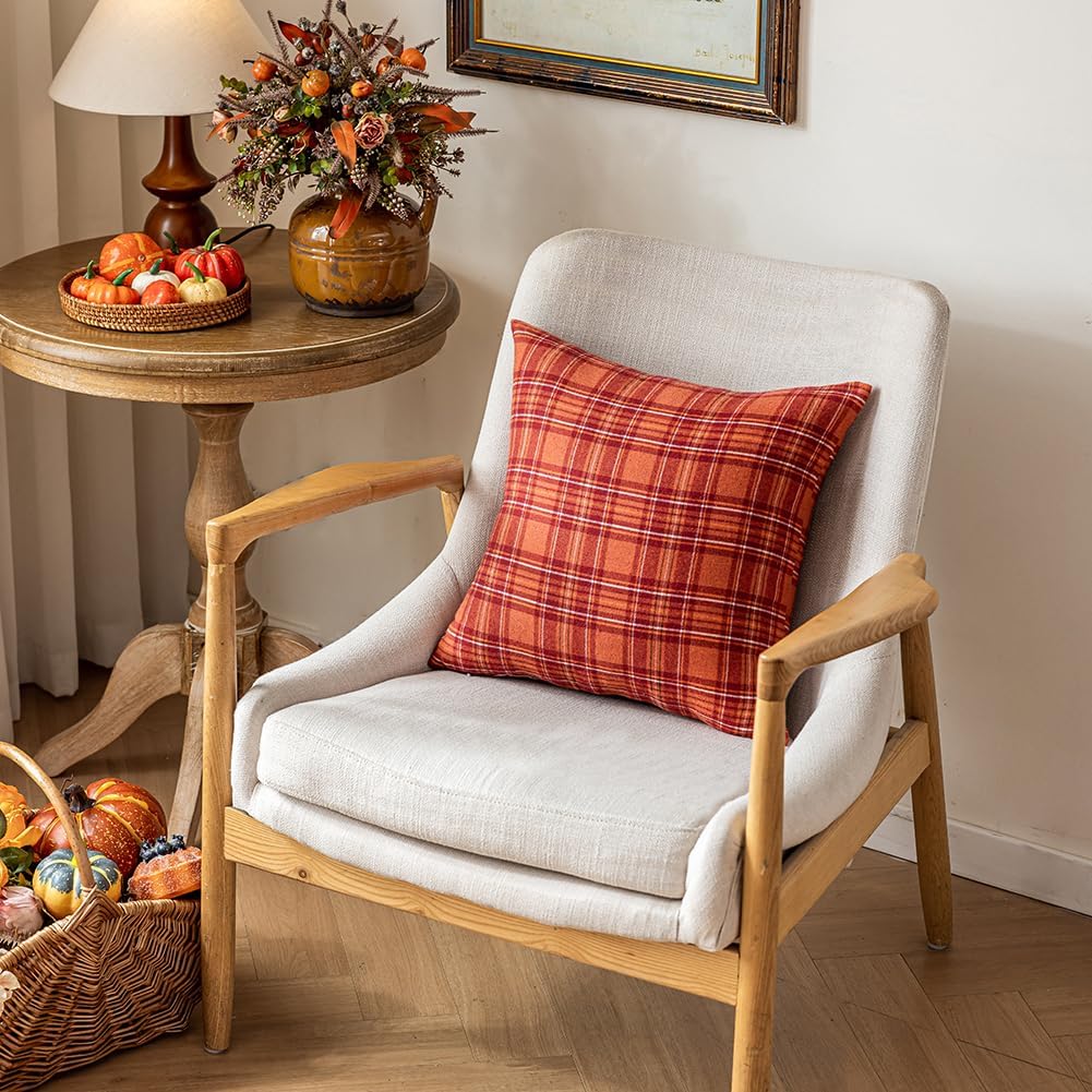 Set of 2 Burnt Orange Fall Tartan Plaid Throw Pillow Covers 20 x 20