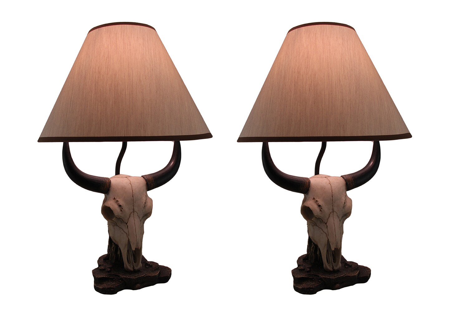 Set of 2 Cattle Ranch Bovine Cow Skull Decorative Table Lamps with Fabric Shades