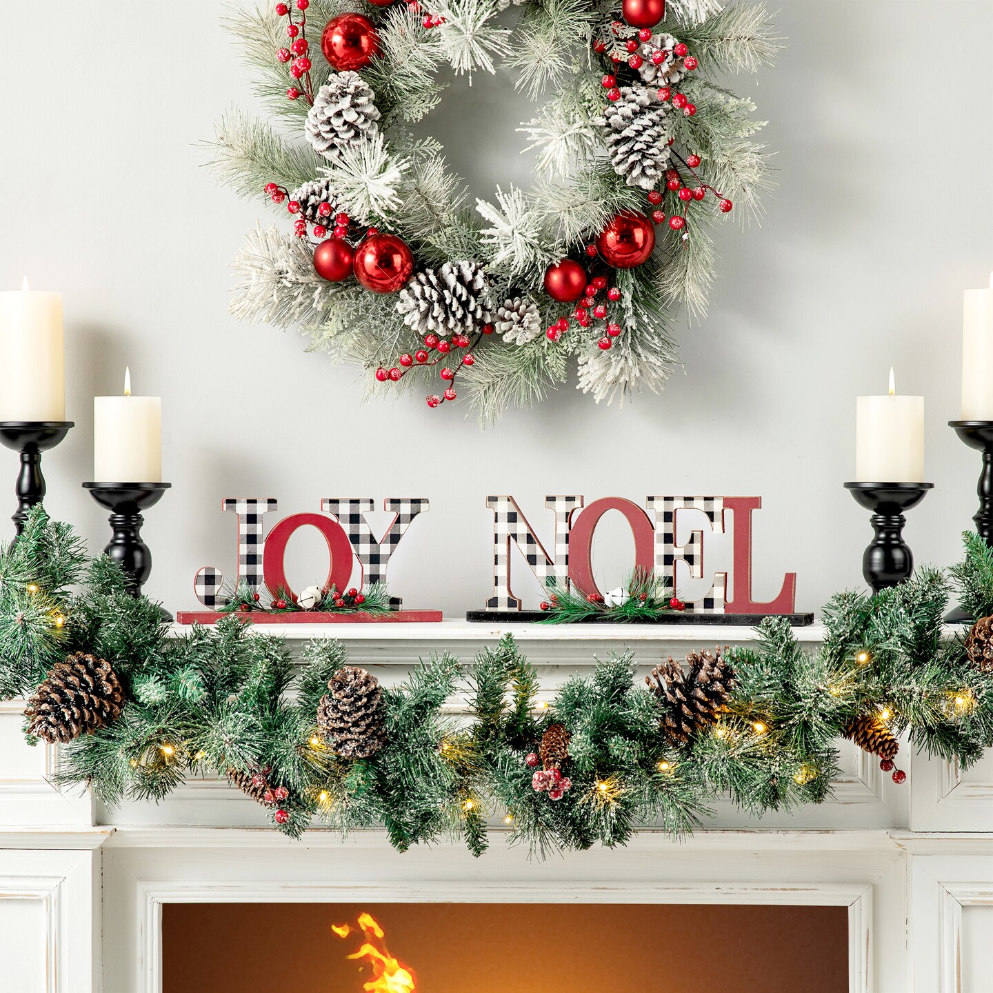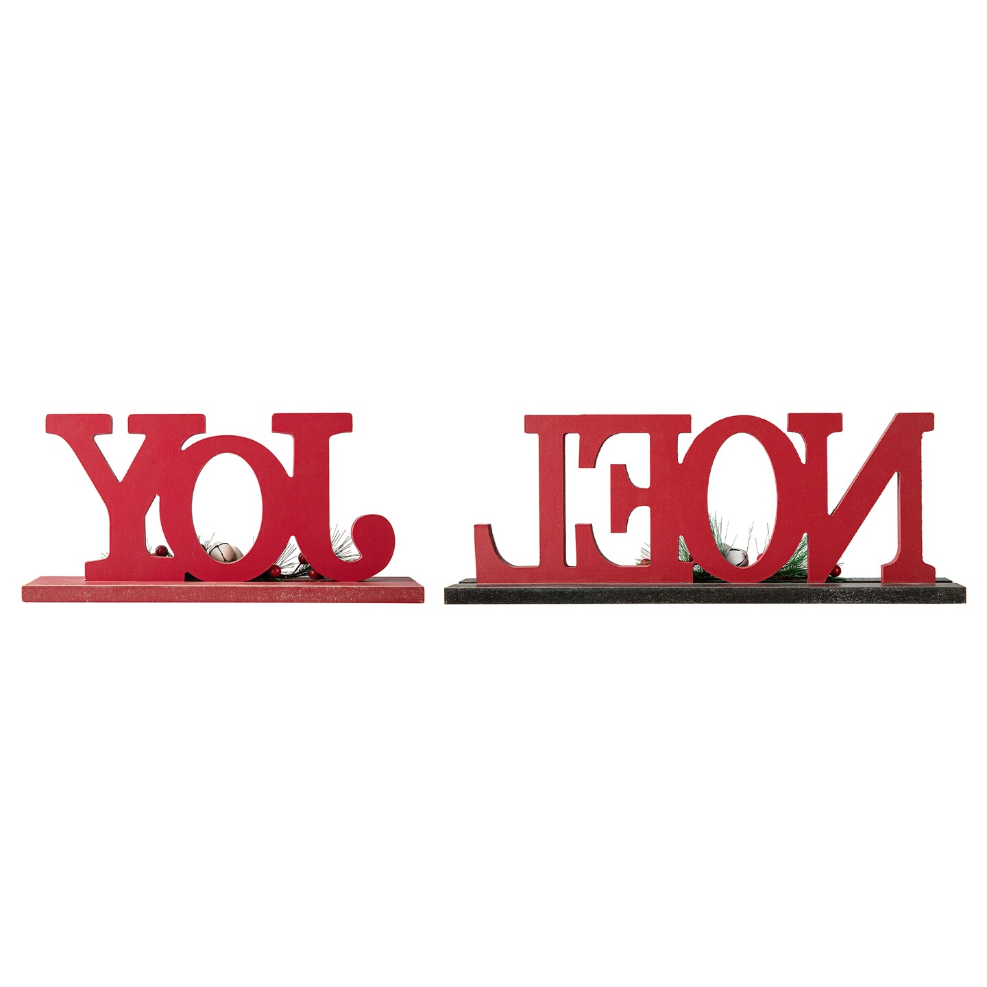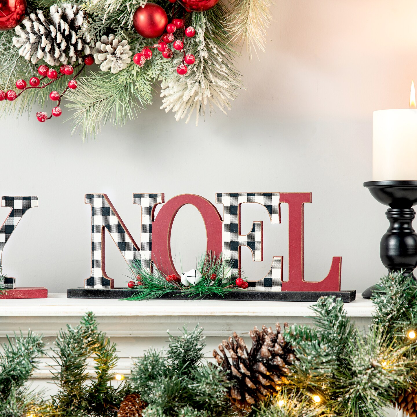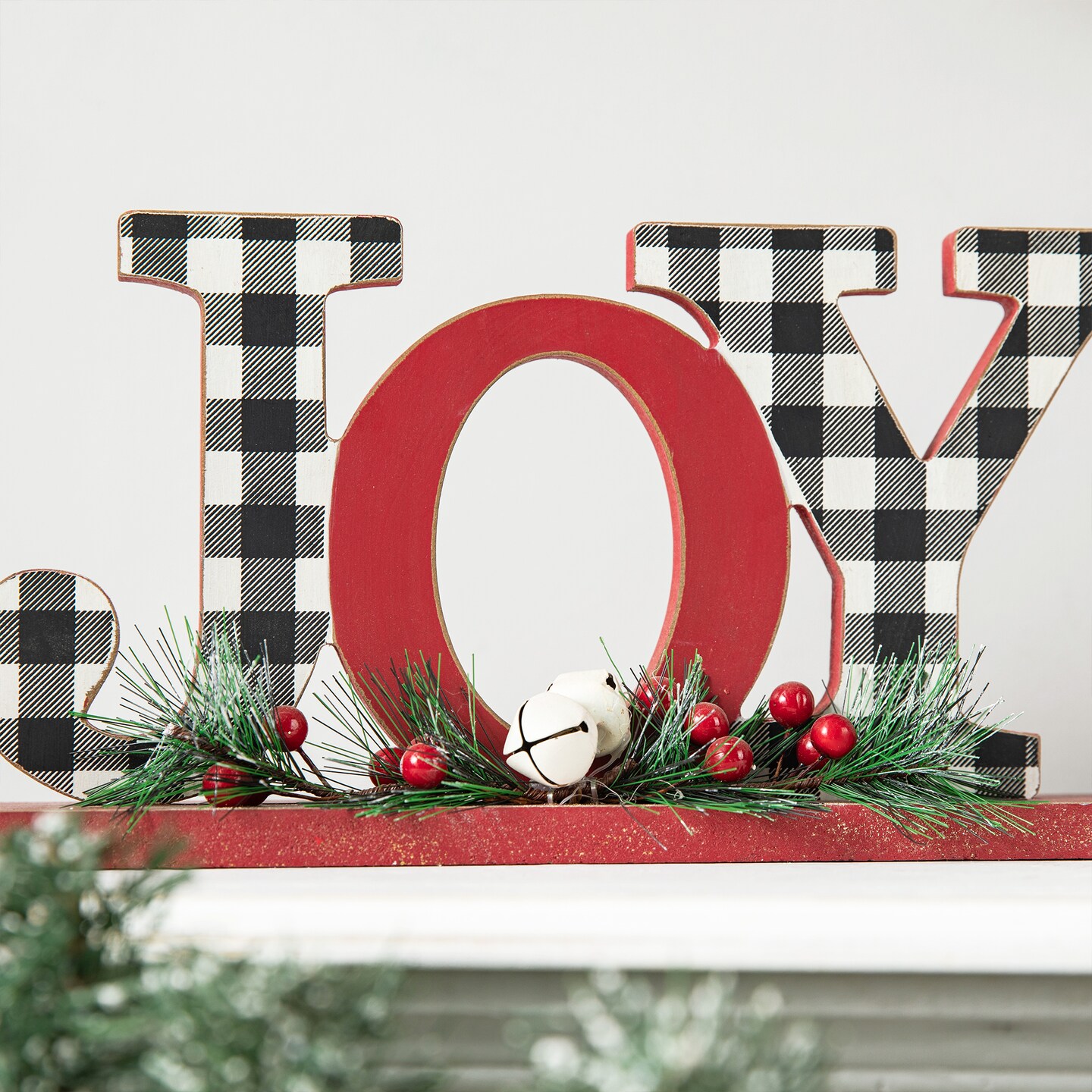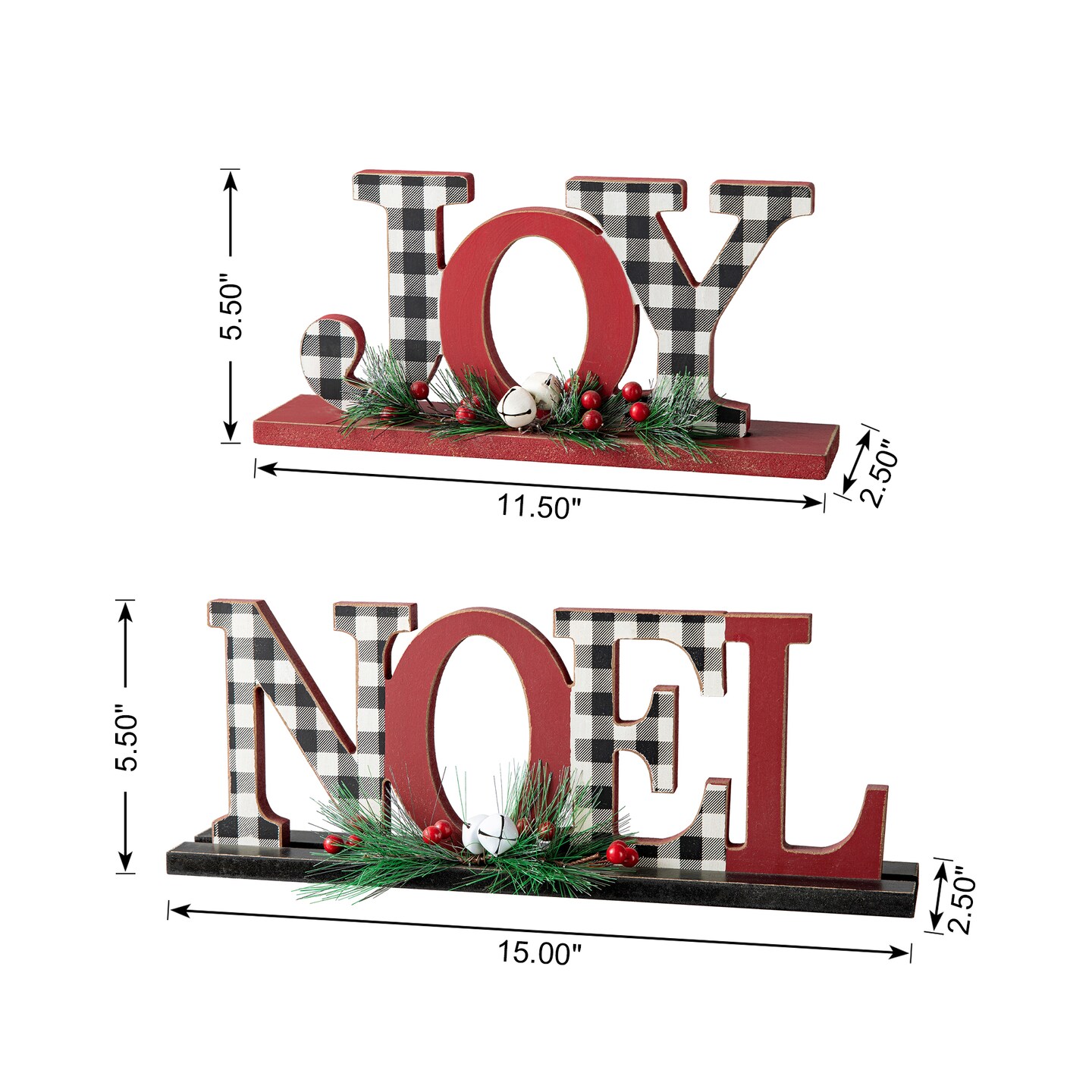Set of 2 Christmas Wooden Plaid JOY/NOEL Table Decor