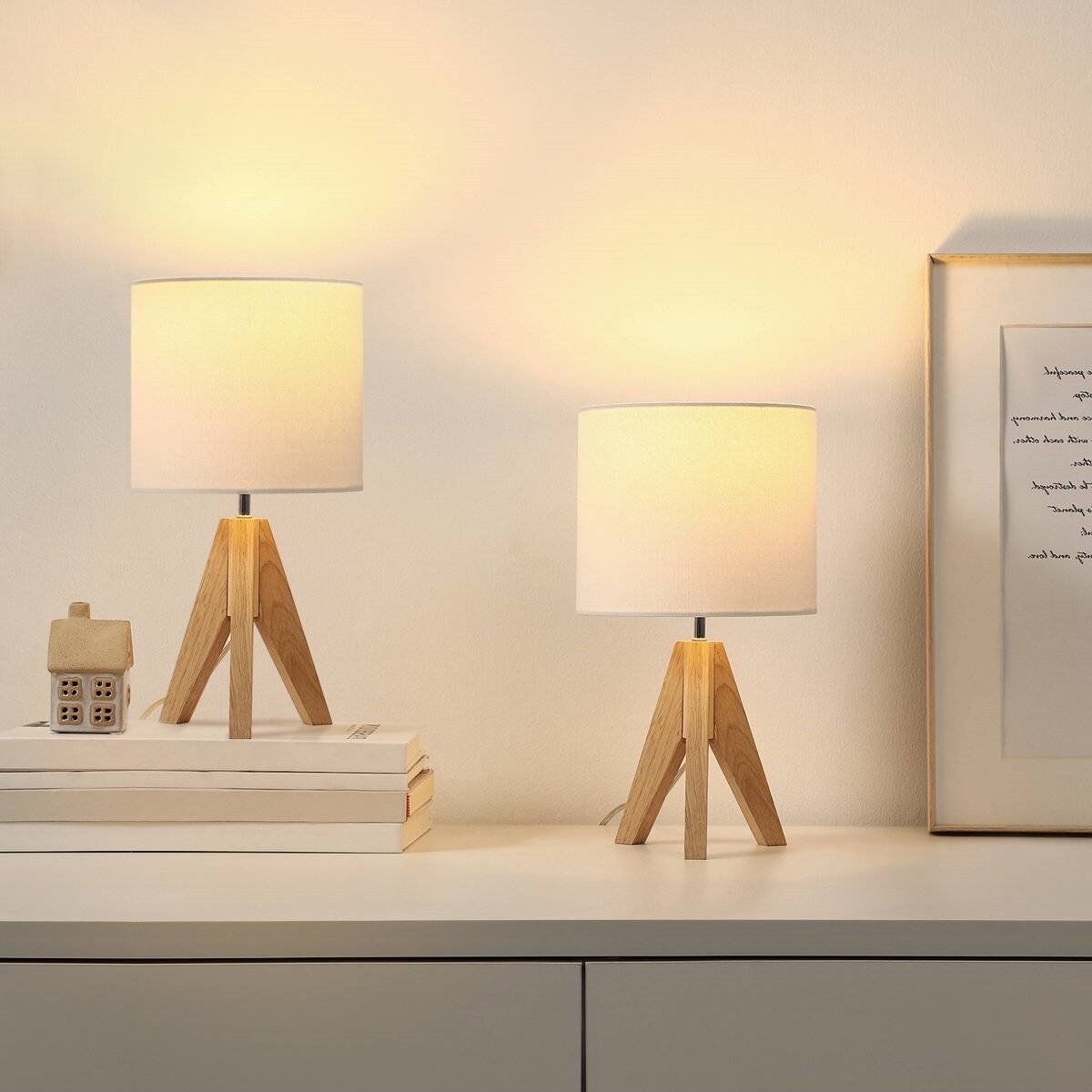 Set of 2 Compact Tripod Table Lamps for Bedroom or Living Room