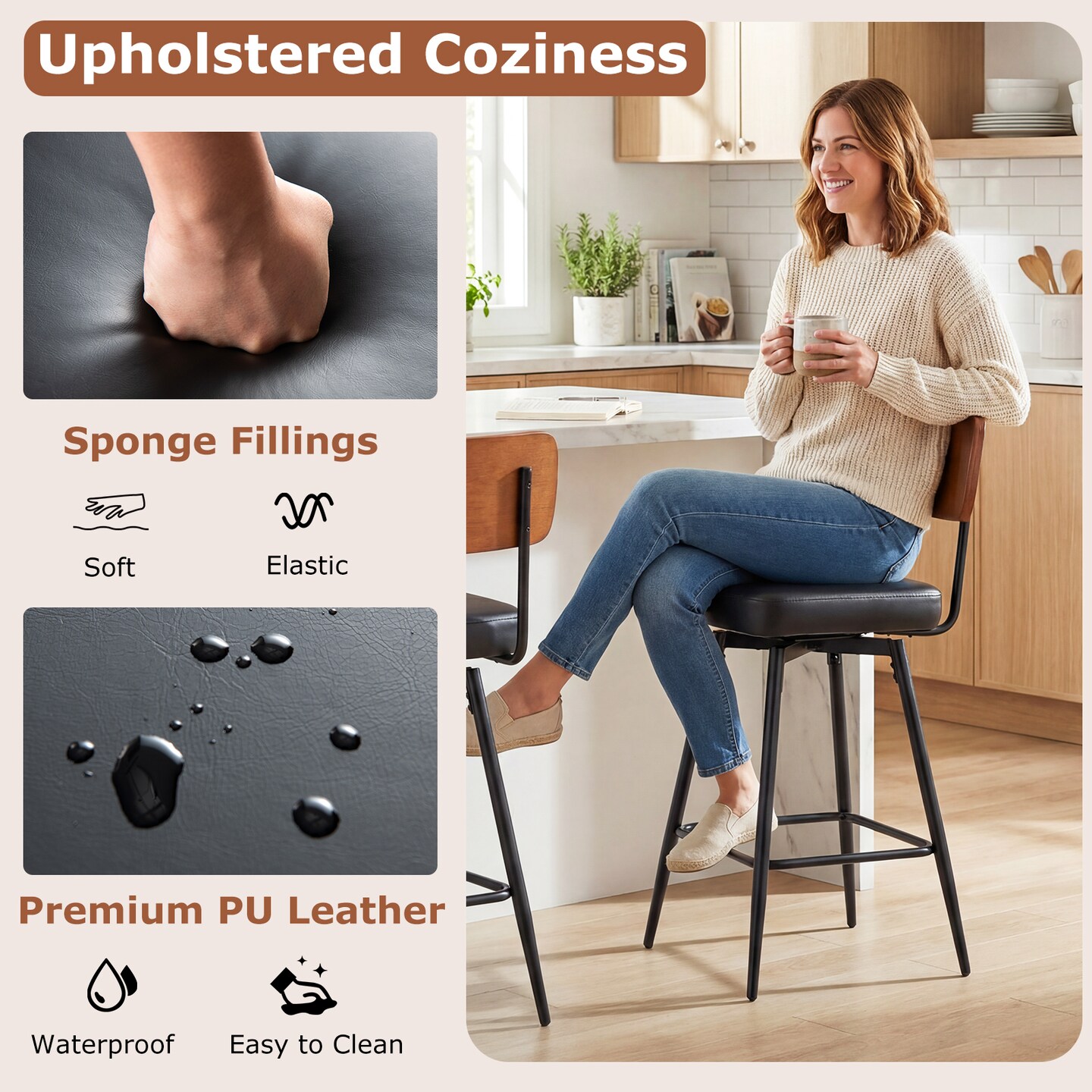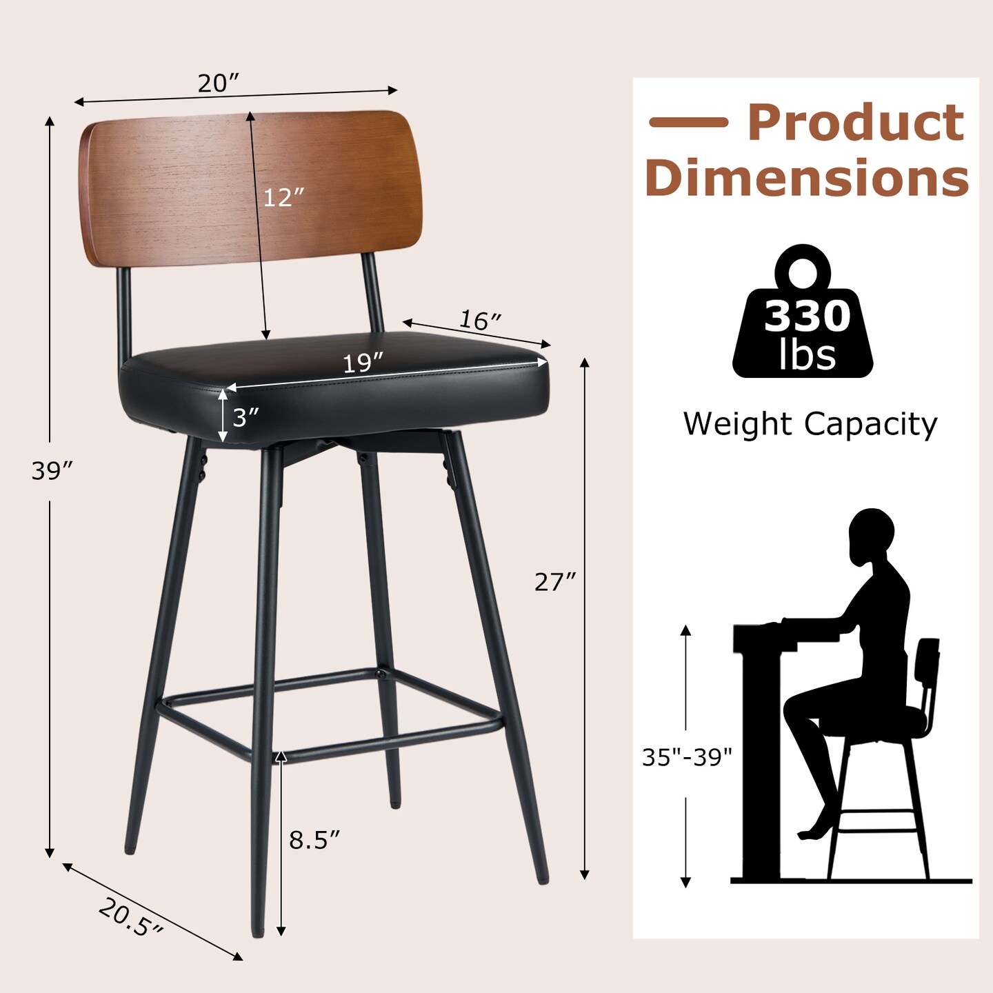 Set of 2 Counter Bar stools 27" with Padded Seat and Metal Legs