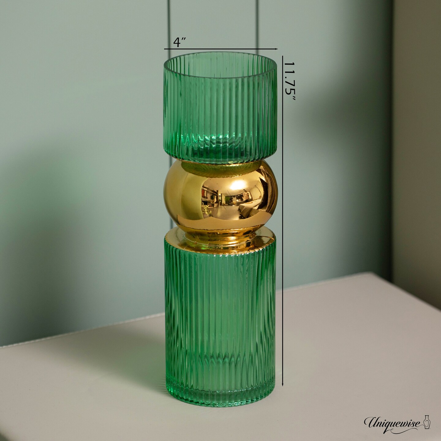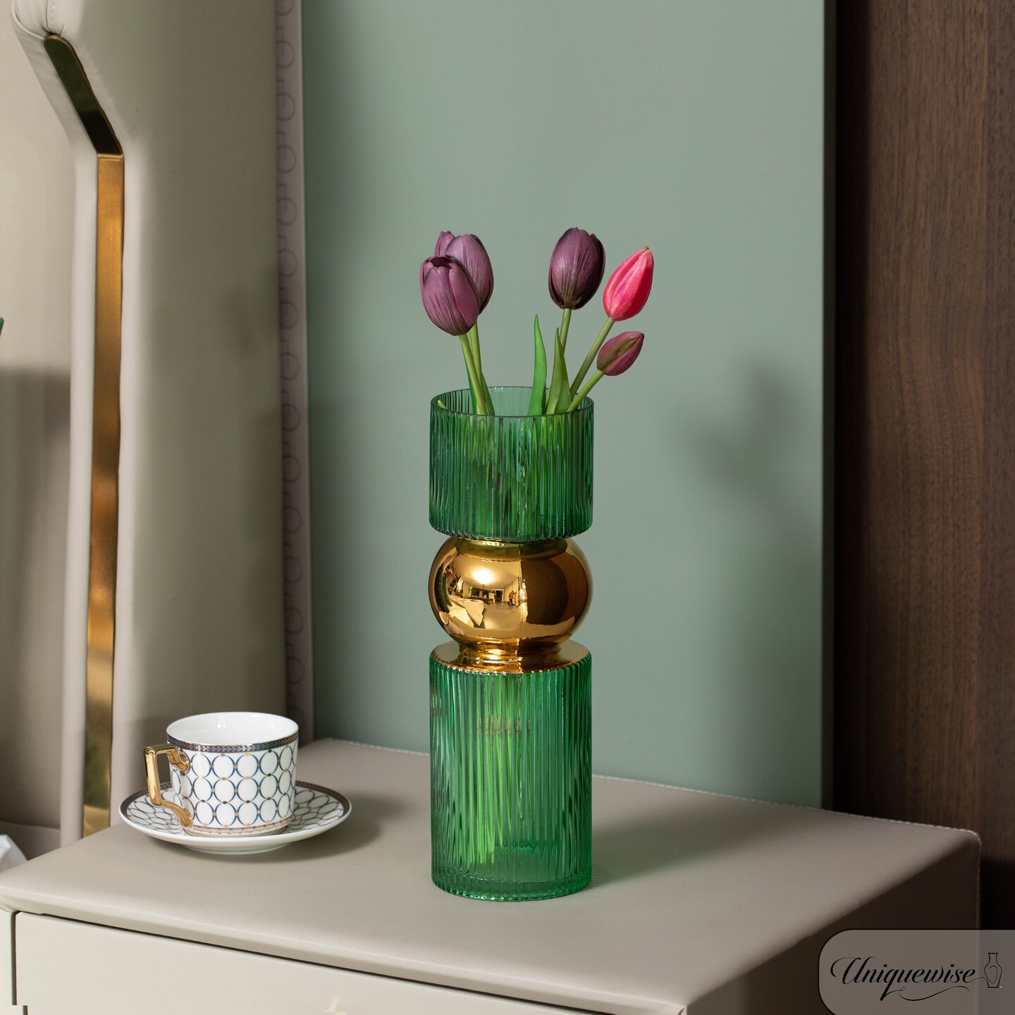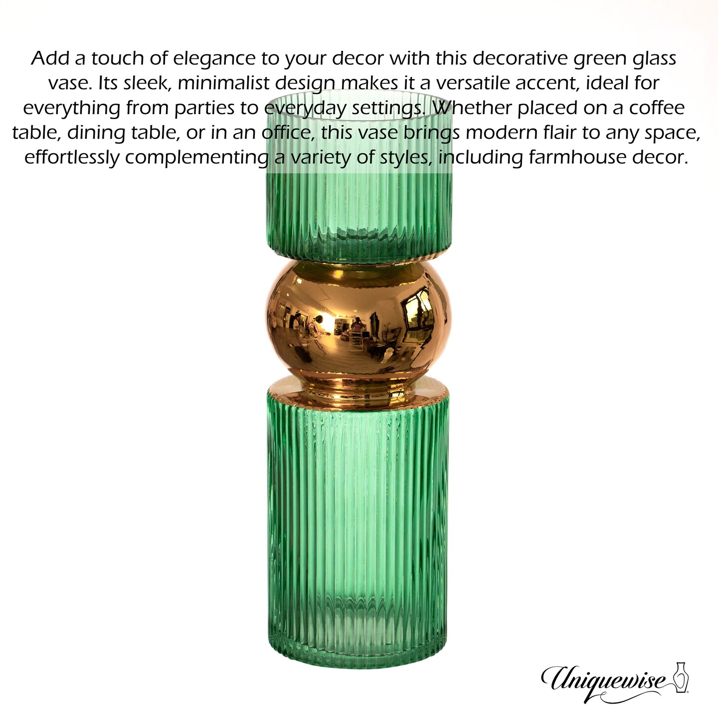 Set of 2 Decorative Green Tall Glass Vase - Modern Minimalist Decor for Parties, and Special Events - Perfect Centerpiece for Coffee Tables, Living Rooms, Dining Tables, Offices, and Farmhouse Decor