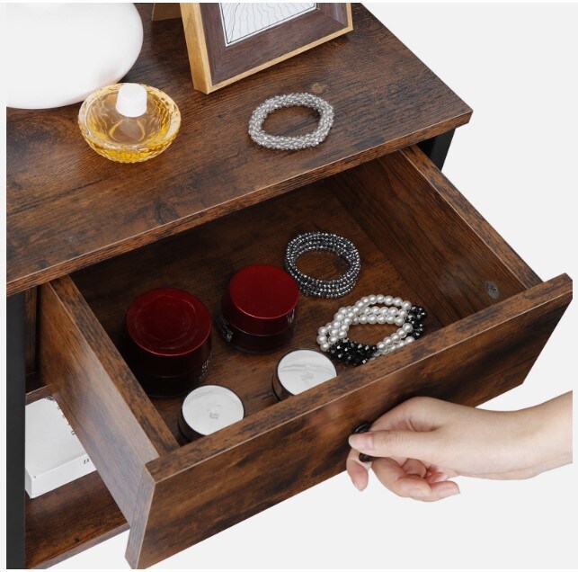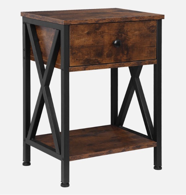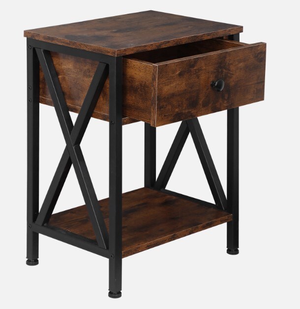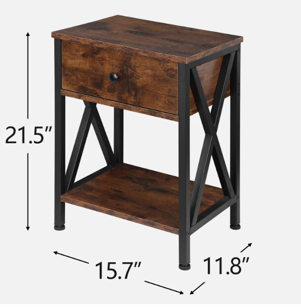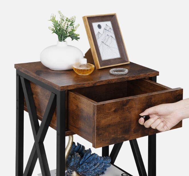 Set of 2 End Tables w/Drawers Storage Home Organizer Table Shelf X-Design Legs