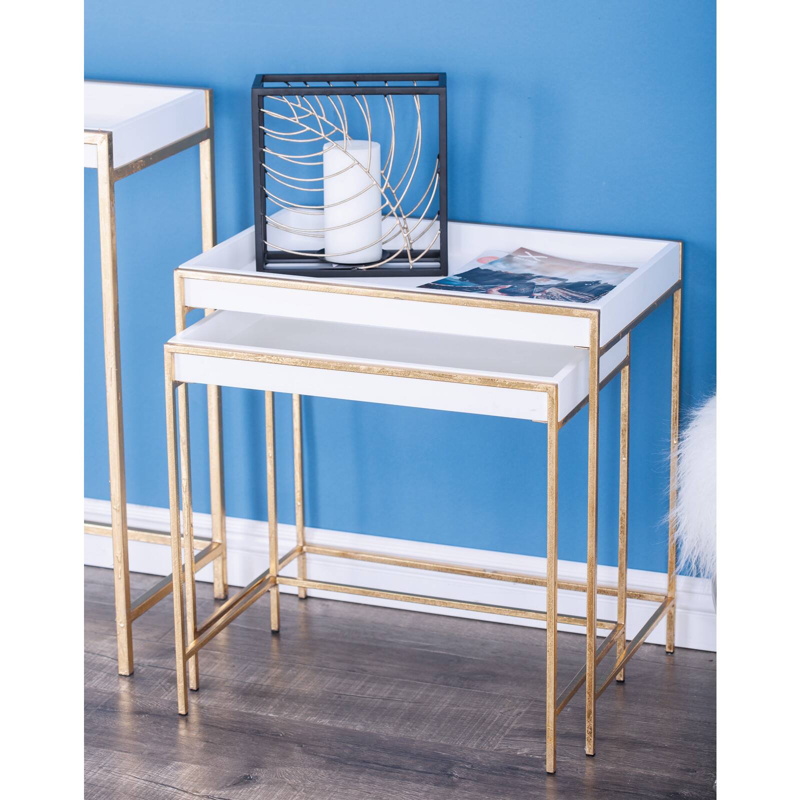 Set of 2 Gold Metal Contemporary Console Table, 22", 20"