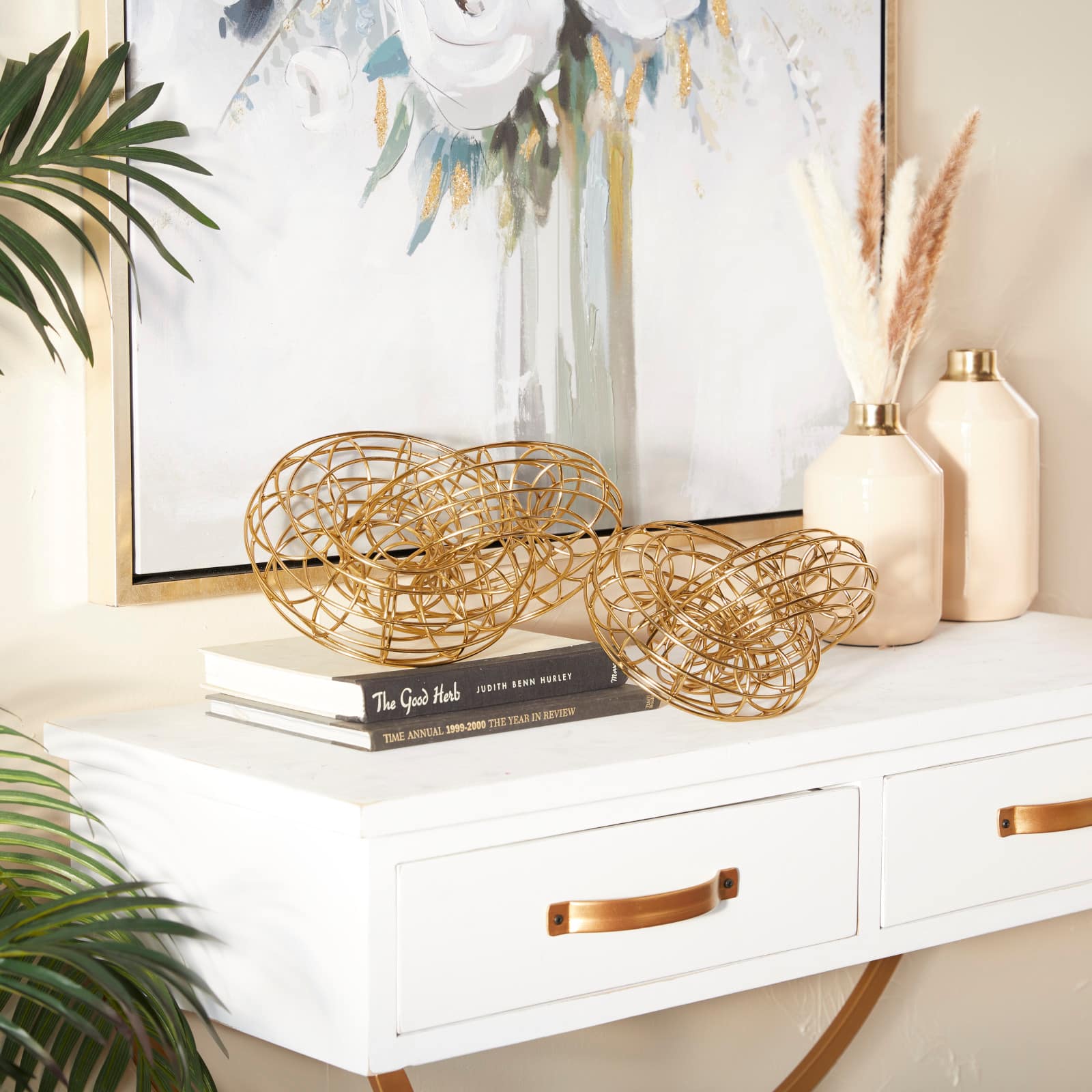 Set of 2 Gold Metal Contemporary Sculpture, 7" x 12" x 8"