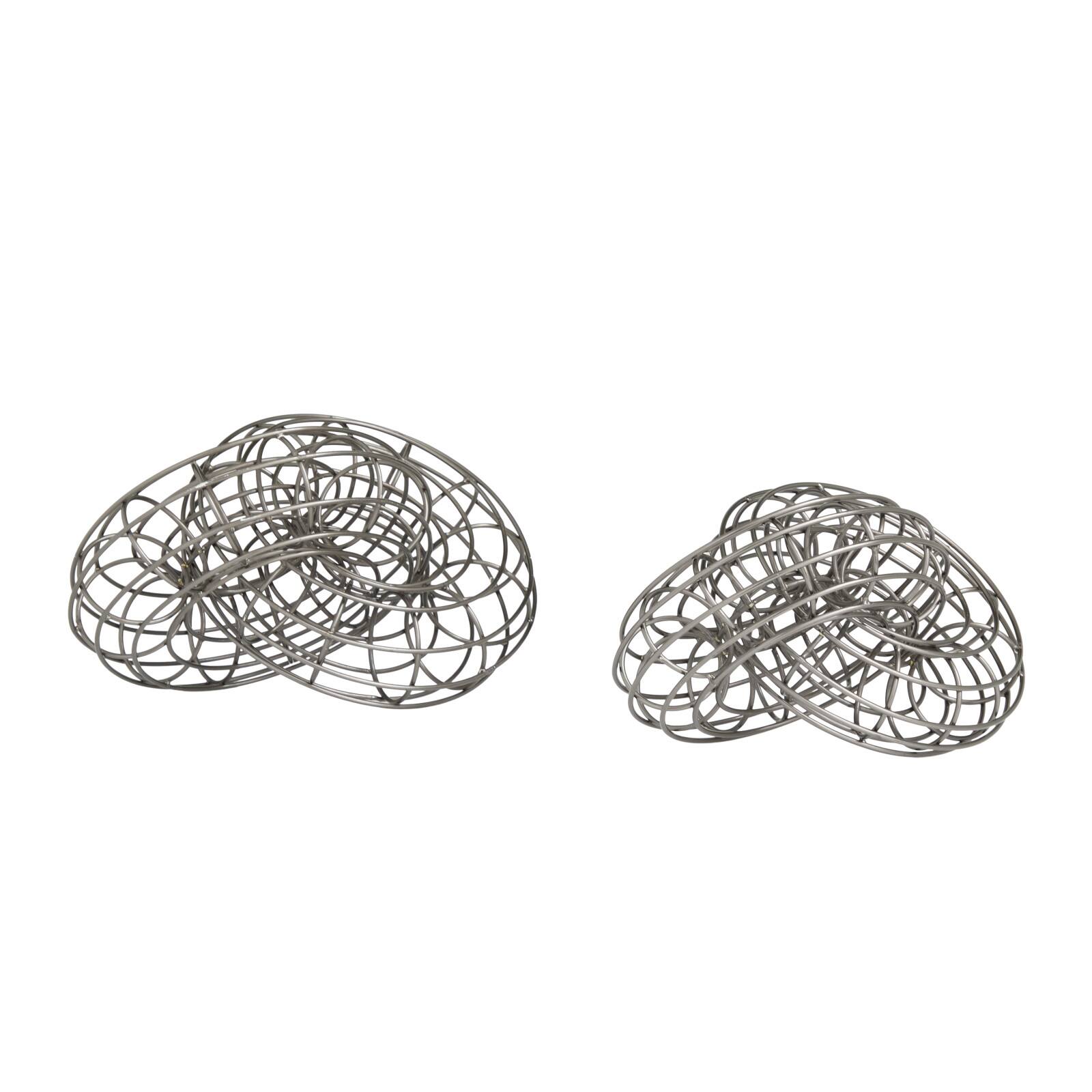 Set of 2 Grey Metal Contemporary Sculptures, 7" x 8" x 9"