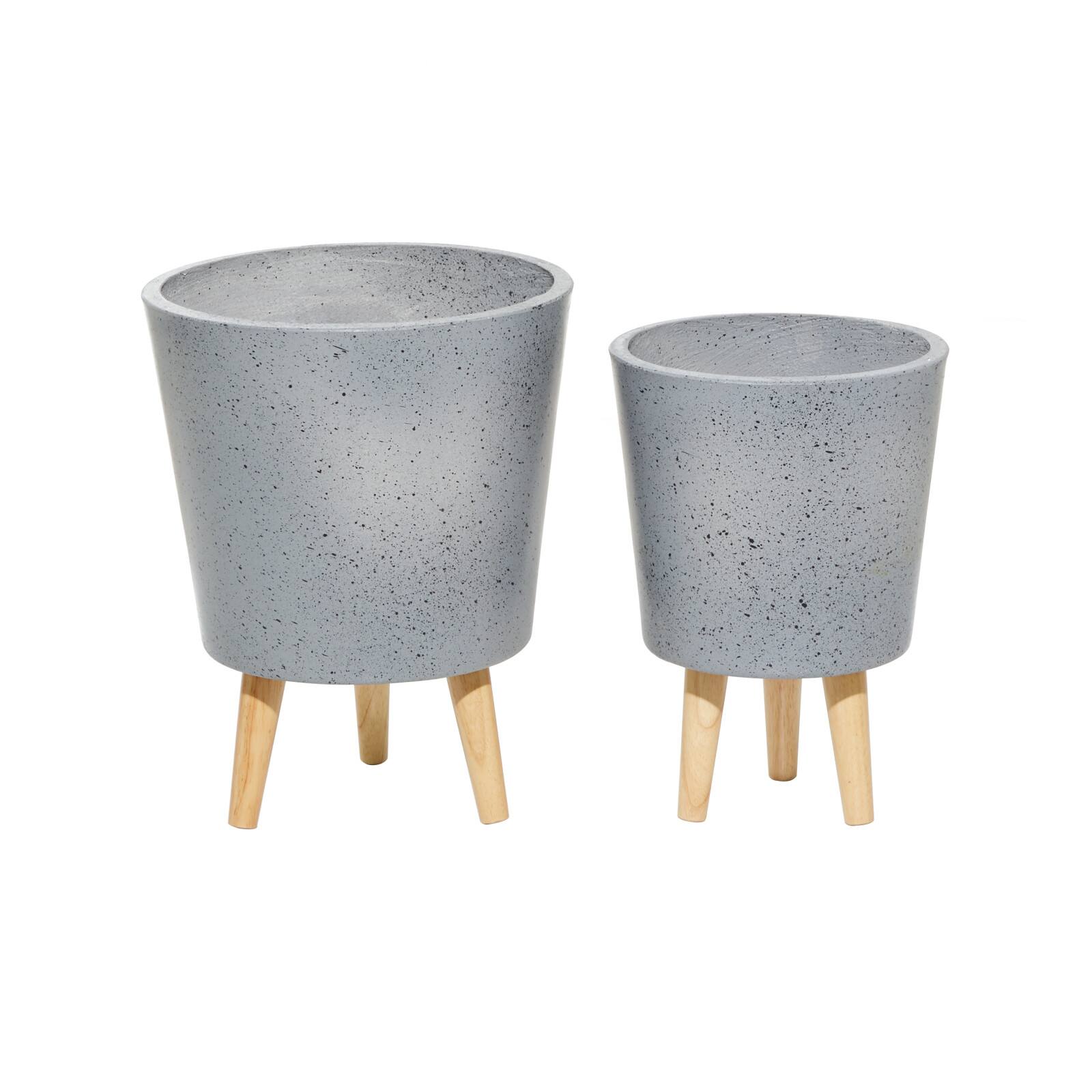 Set of 2 Grey MgO Contemporary Planter 14", 16"