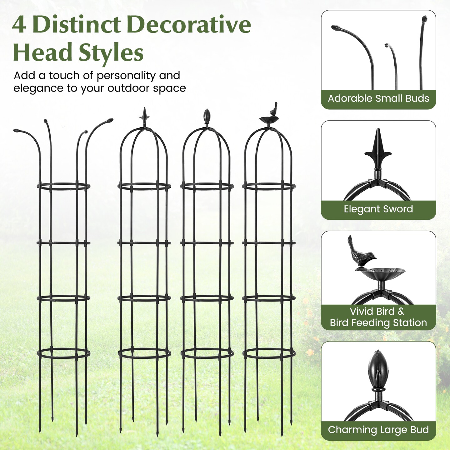 Set of 2 Height Adjustable Garden Trellis Towers with Decorative Tops Plant Support for Vines or Flowers