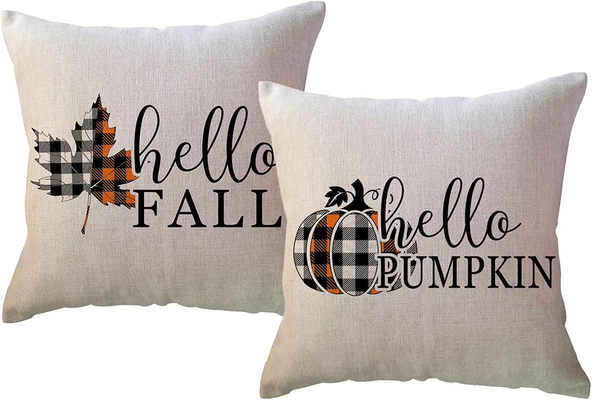 Set of 2 Hello Fall Throw Pillow Covers Buffalo Plaid