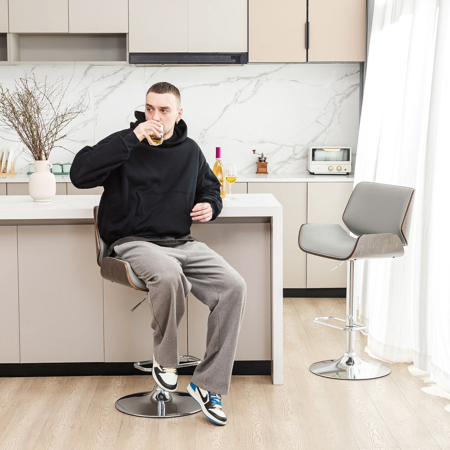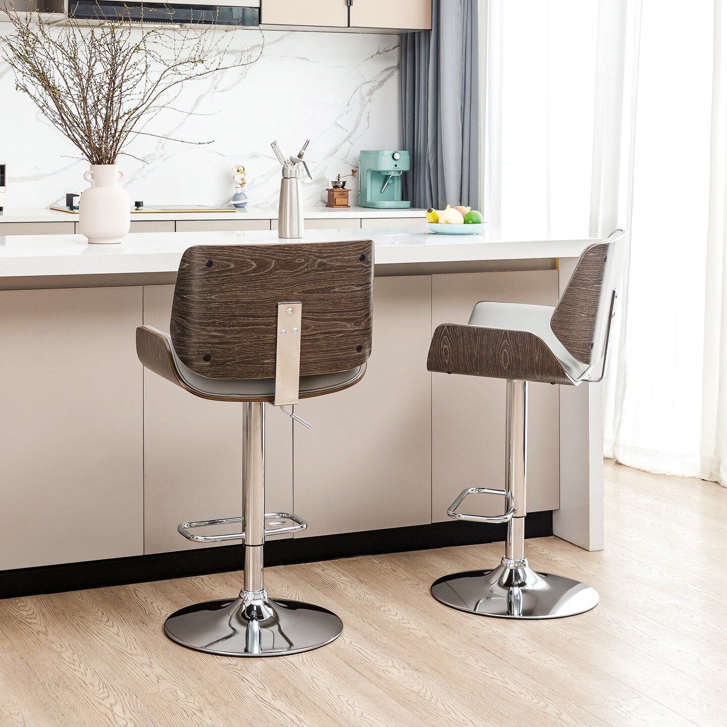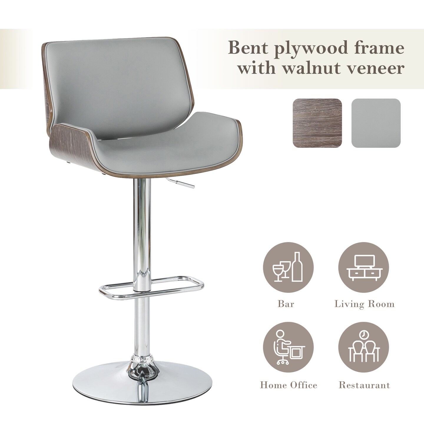 Set of 2 Mid-century Modern Leatherette Adjustable Height Swivel Bar Stool with Black Metal Base
