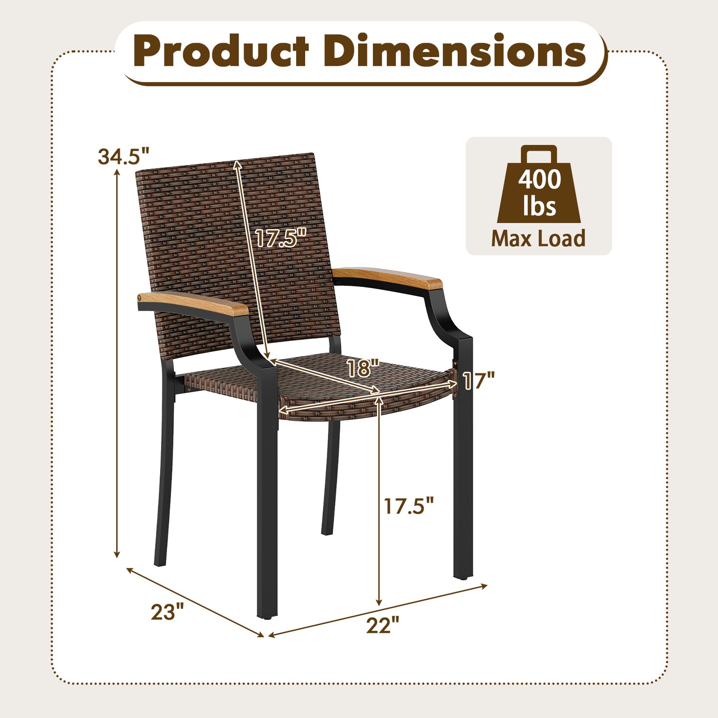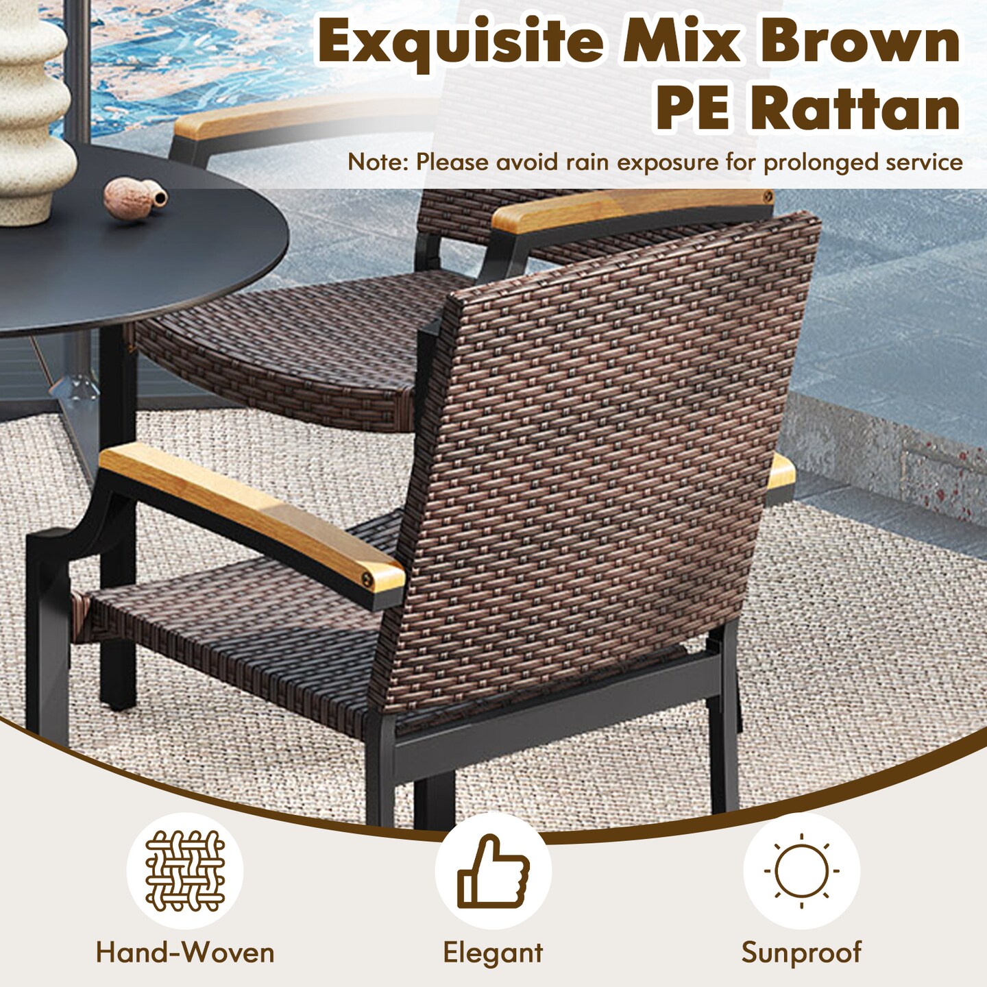 Set of 2 Mix Brown Rattan Patio Chair with Metal Frame, Ergonomic Armrests Stackable Outdoor Seating