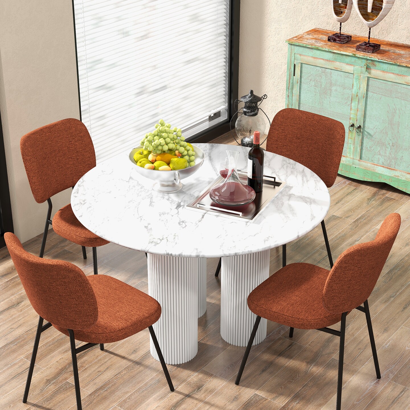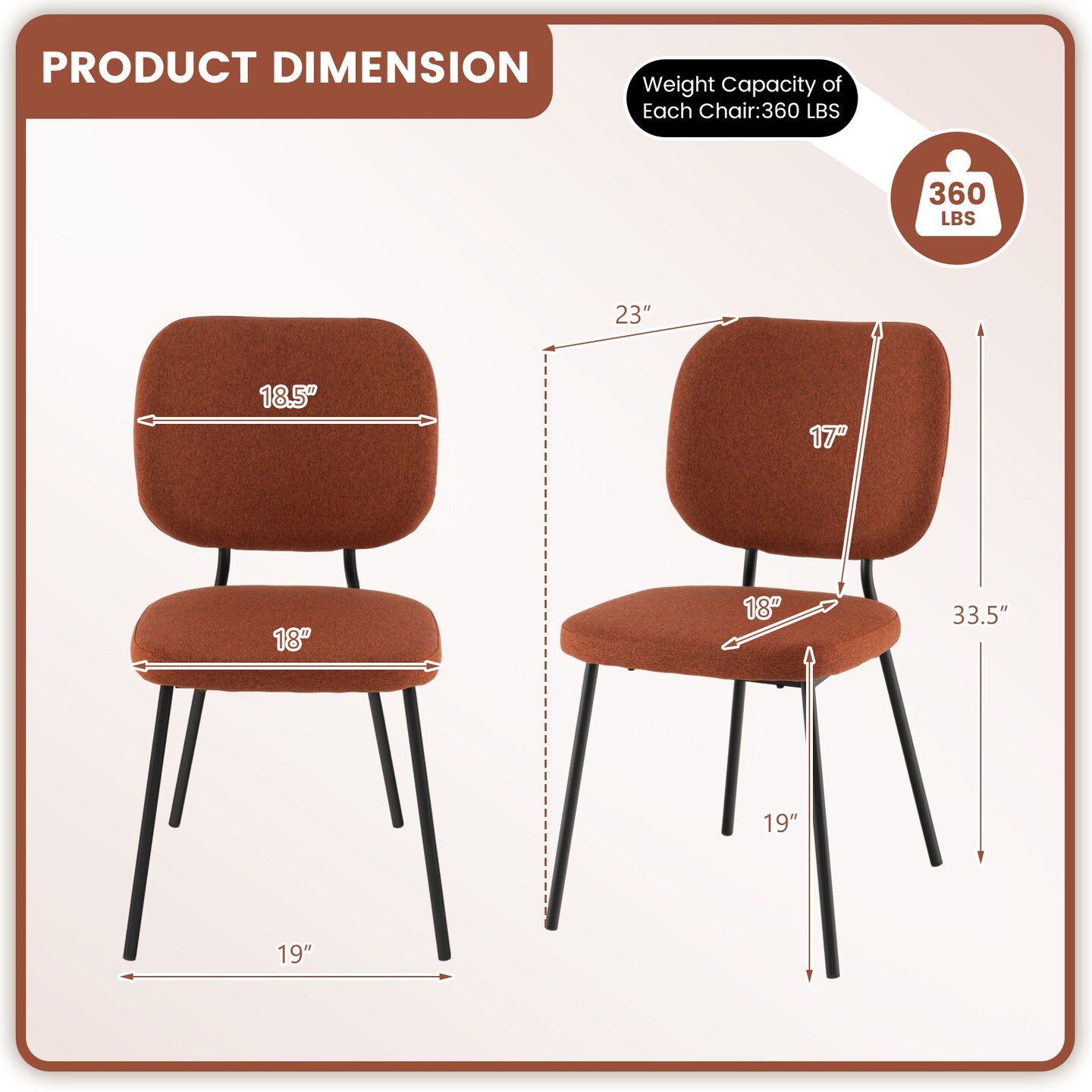 Set of 2 Modern Armless Dining Chairs with Linen Fabric