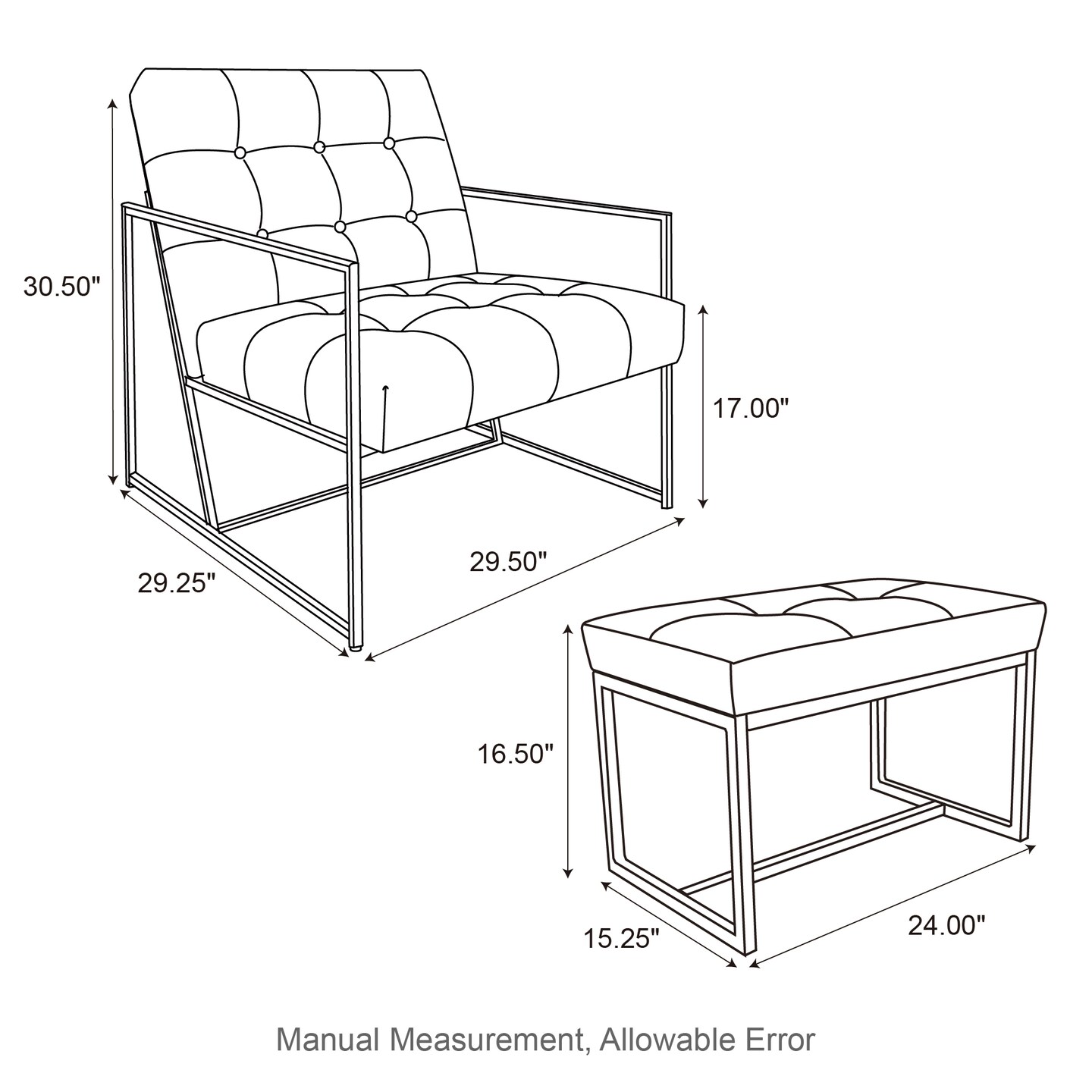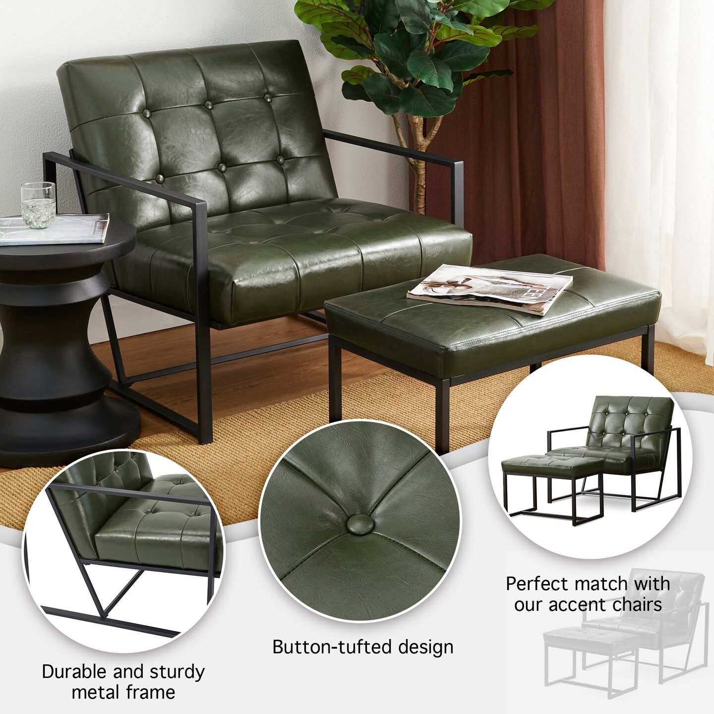 Set of 2 Modern Hunter Thick Leatherette Accent Chair & Accent Stool