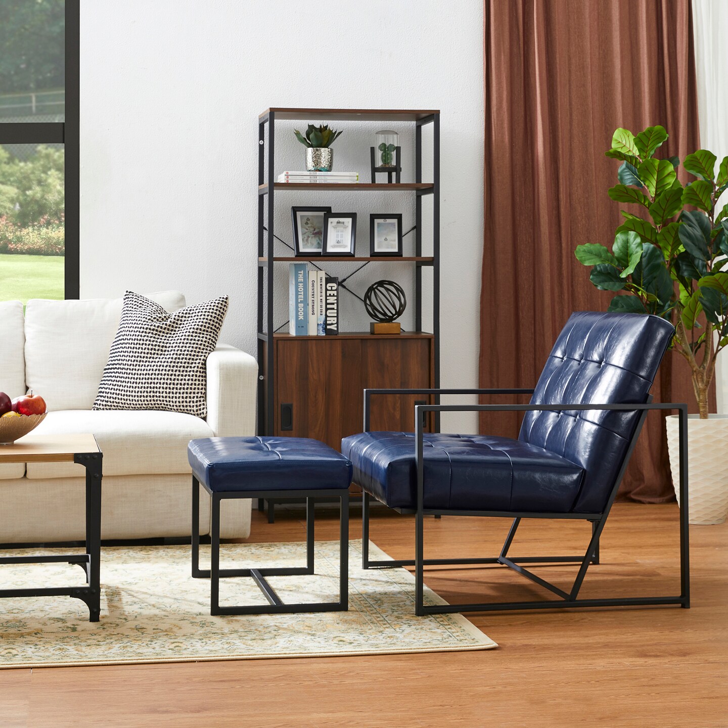 Set of 2 Modern Hunter Thick Leatherette Accent Chair & Accent Stool