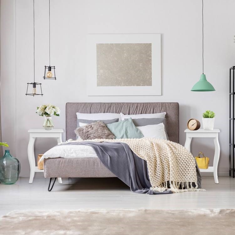 Set of 2 Modern Nightstand Side End Tables with Open Storage Shelf for Bedroom Decor