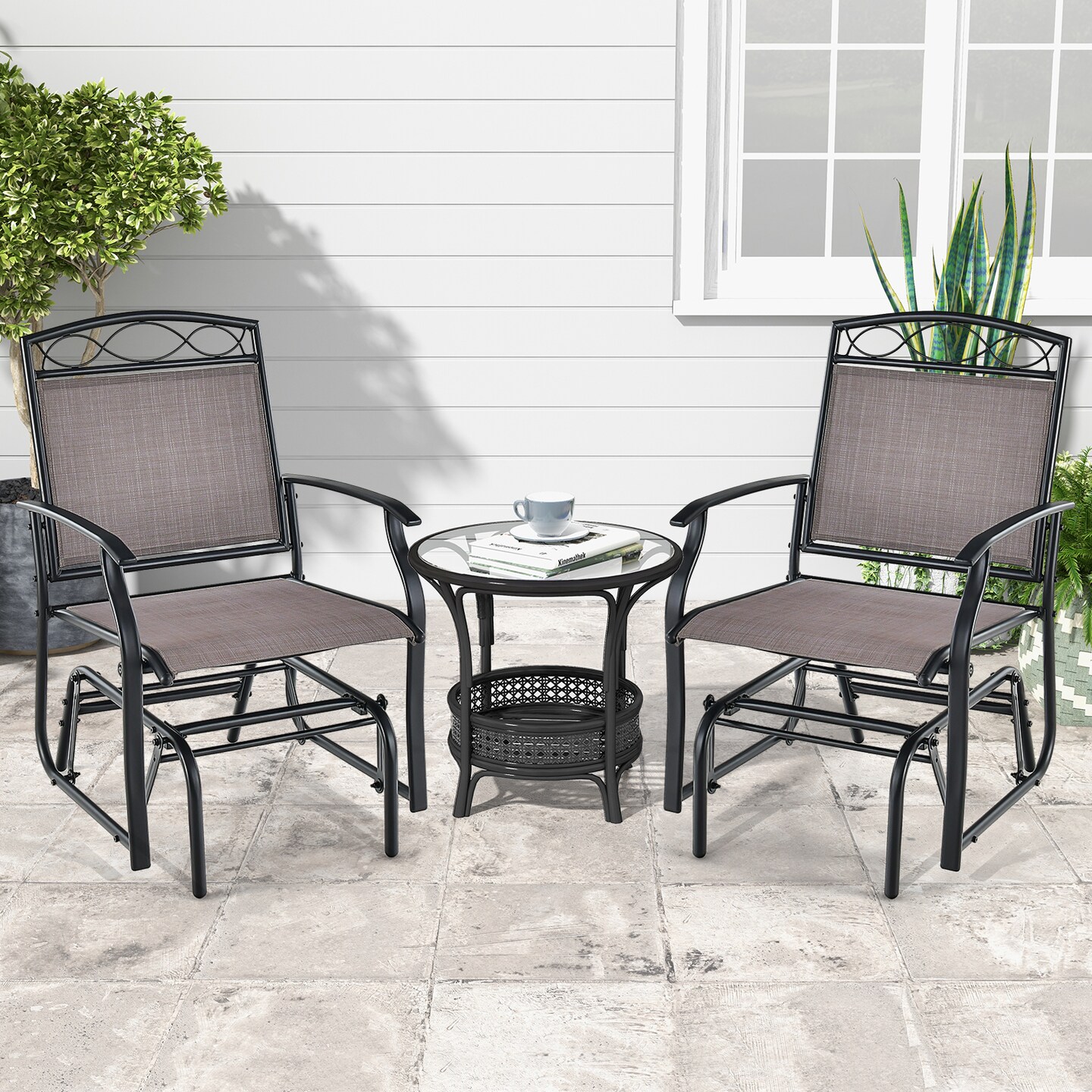 Set of 2 Outdoor Metal Glider Armchairs with Weather-Resistant Fabric
