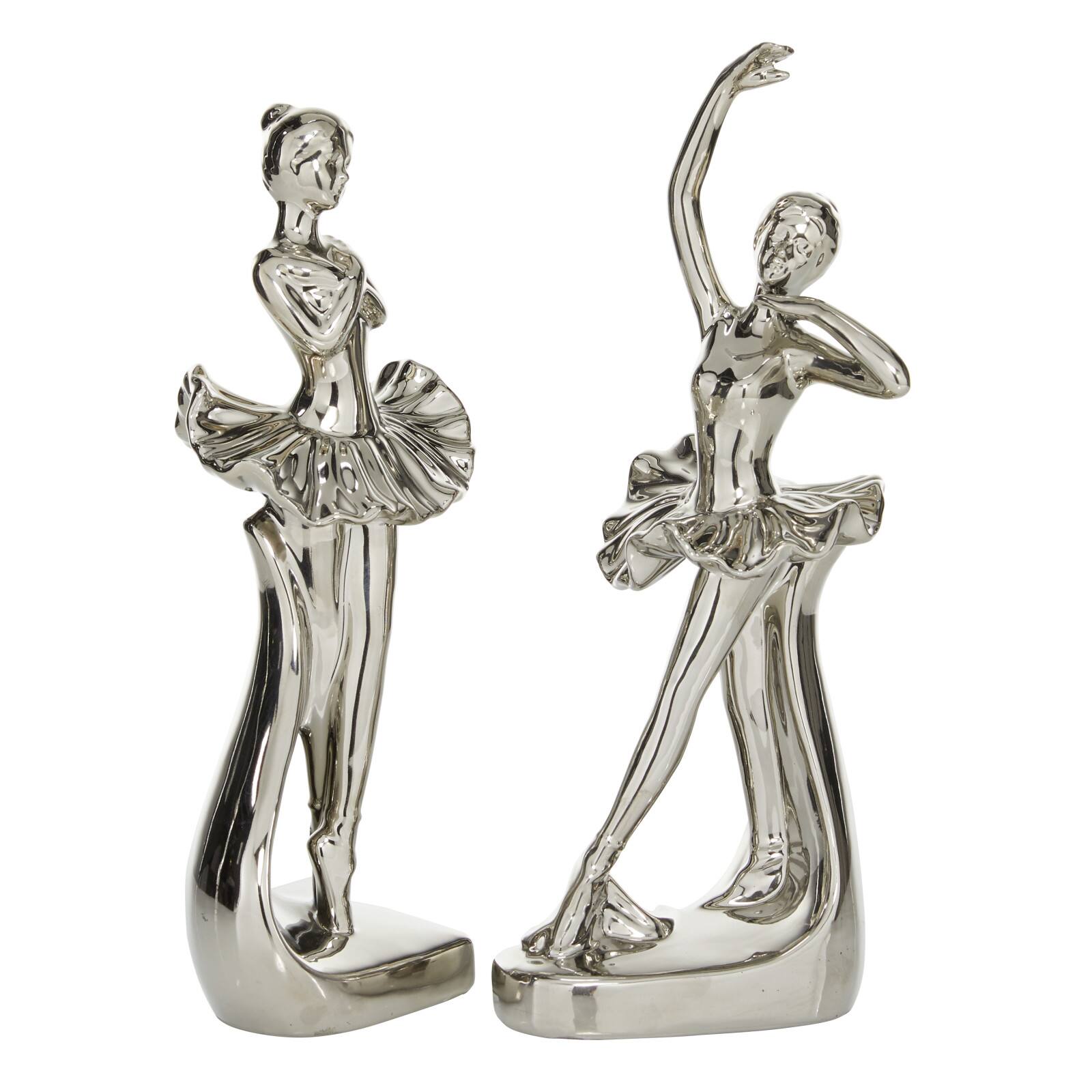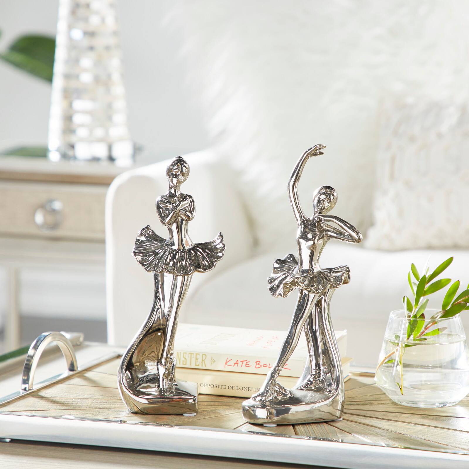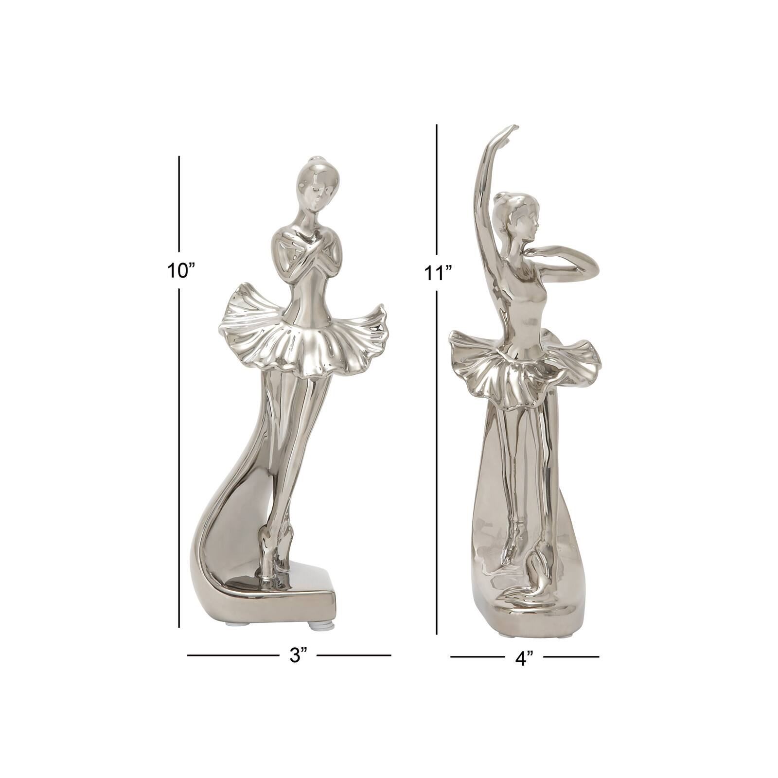 Set of 2 Silver Porcelain Glam Dancer Sculpture, 4" x 11"
