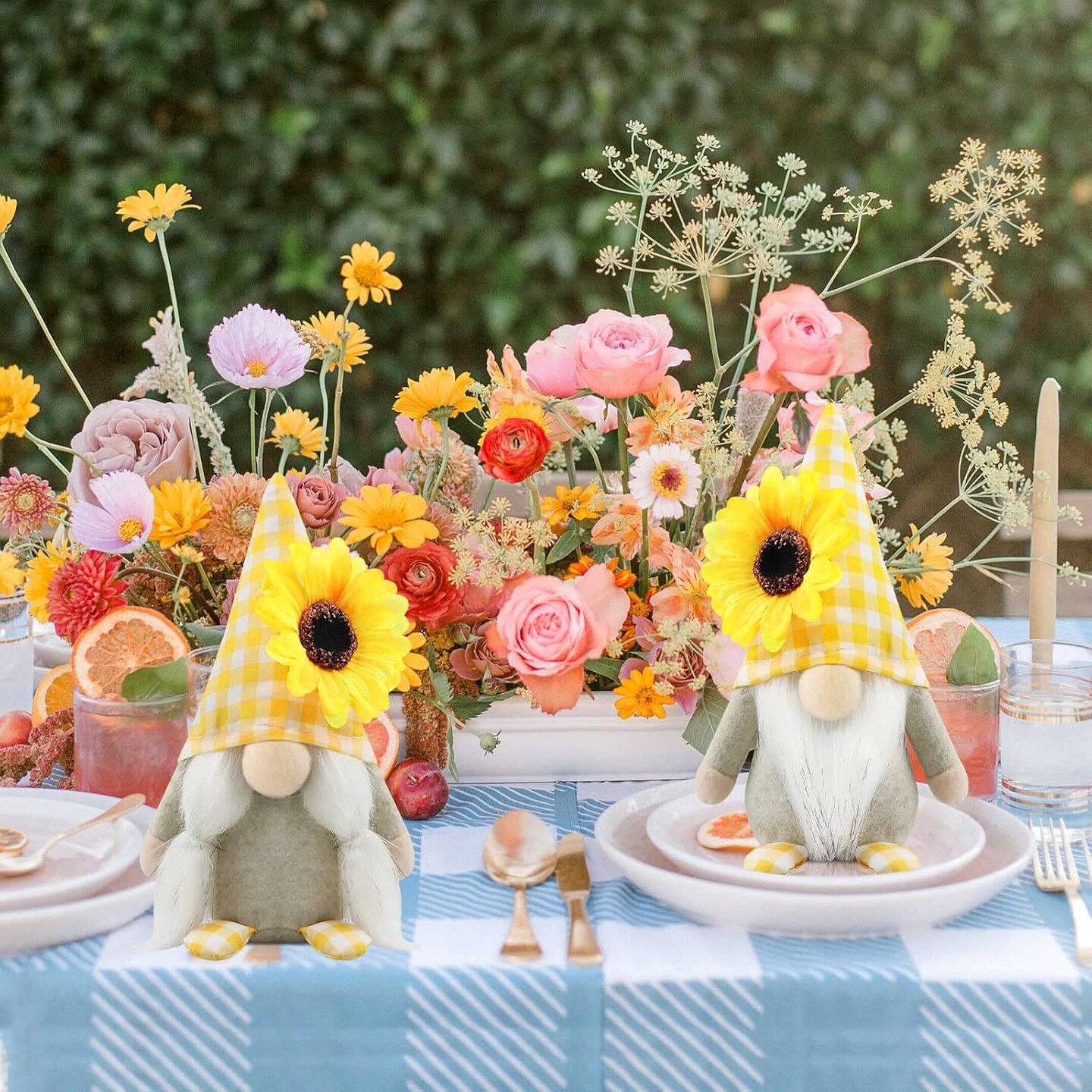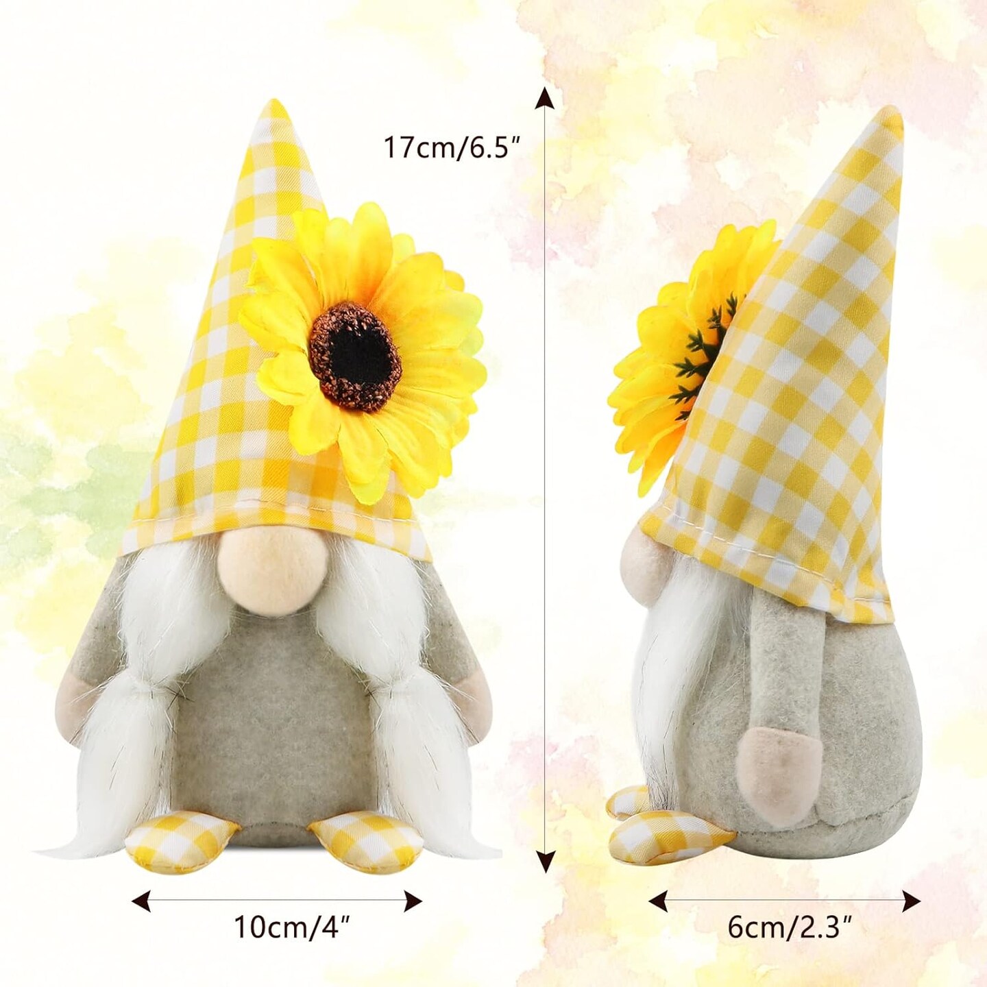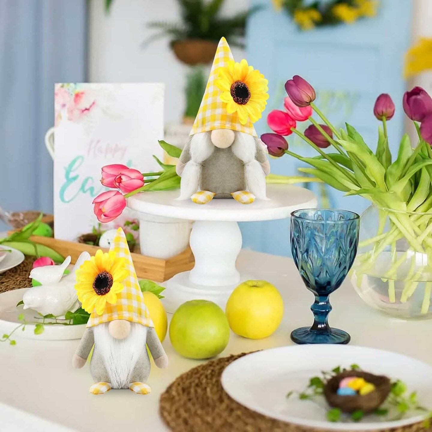 Set of 2 Spring Gnome Figurines with Sunflowers – Handmade Easter & Summer Tiered Tray Decor