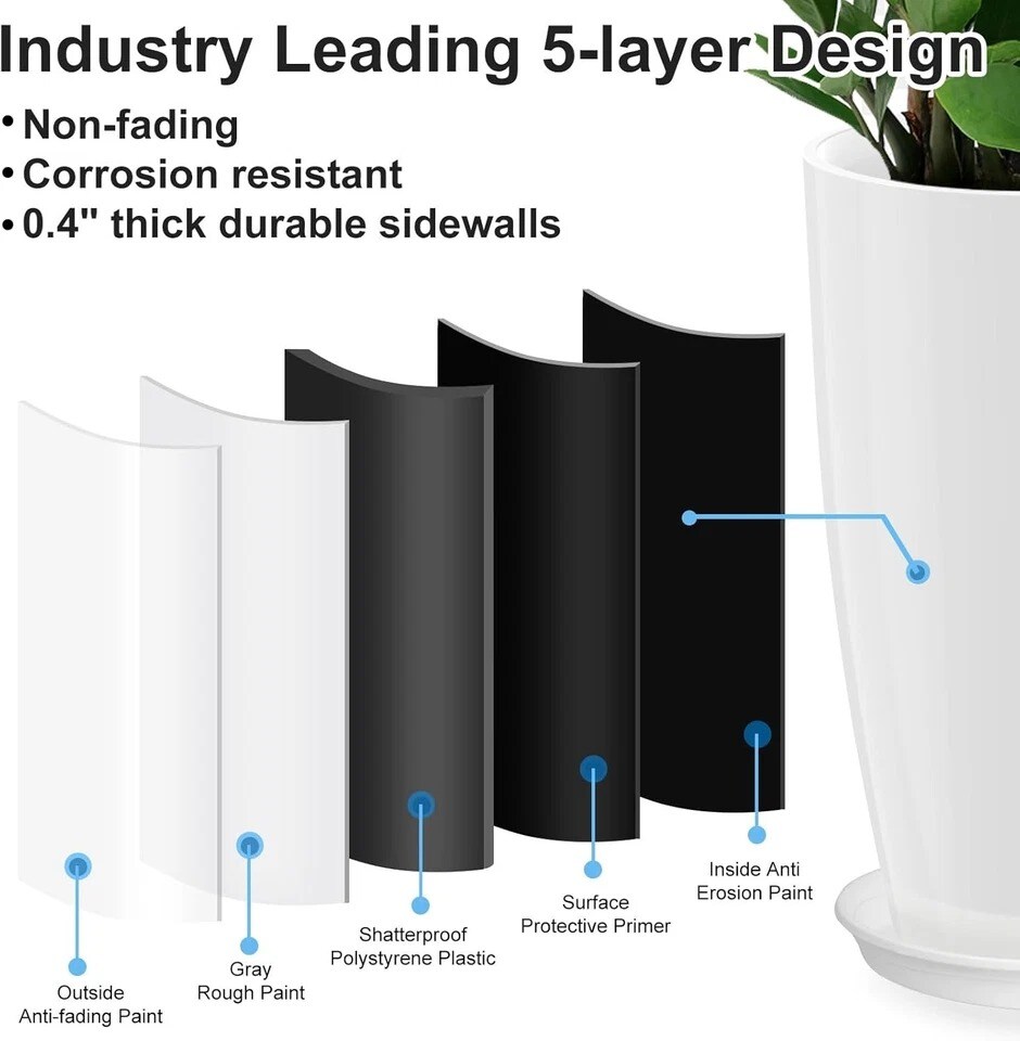 Set of 2 Tall Resin Planters 21" Large Round Flower Pots for Indoor & Outdoor Use