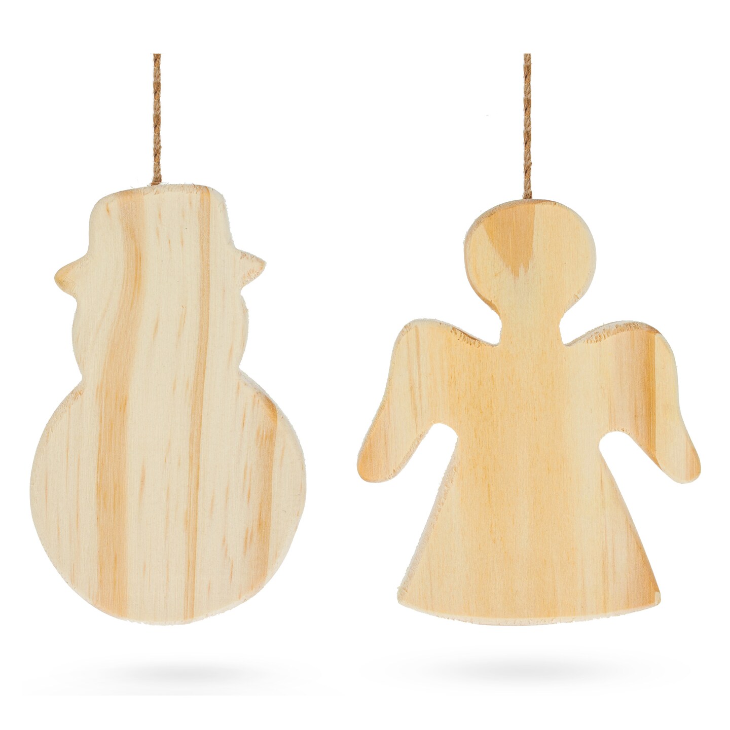 Set of 2 Unfinished Unpainted Wooden Snowman and Angel Christmas Ornaments Cutouts DIY Craft 4.5 Inches