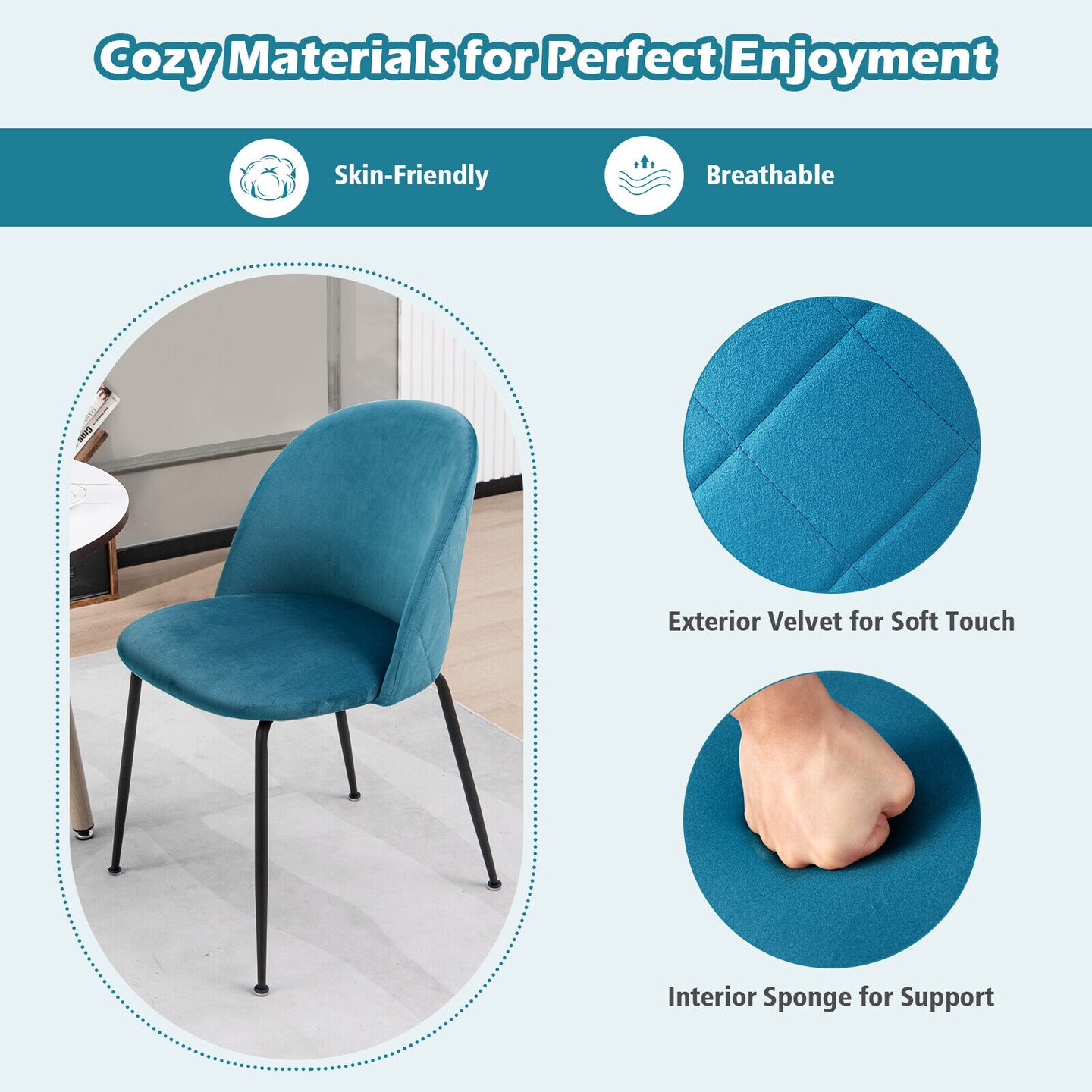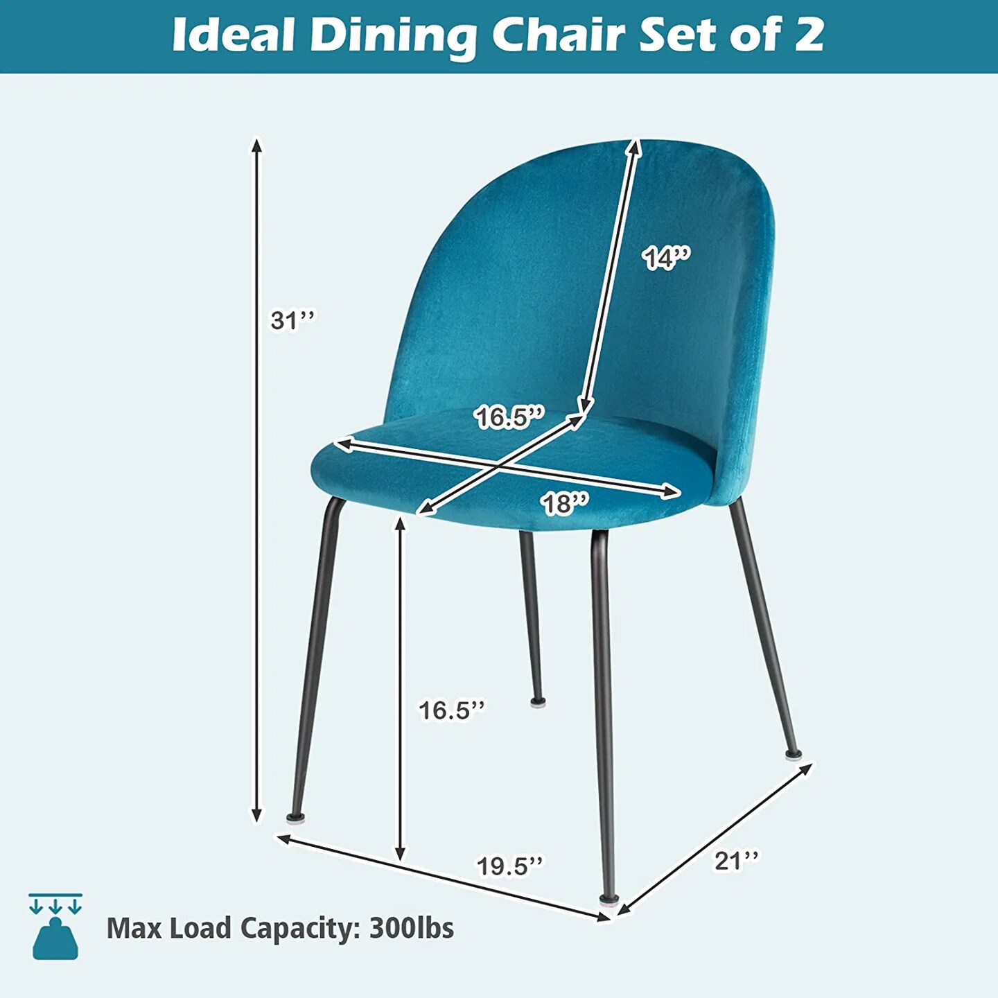Set of 2 Upholstered Velvet Dining Chair with Metal Base for Living Room