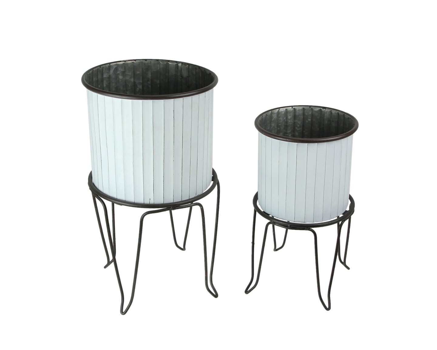 Set of 2 White / Charcoal Round Metal Tub Planters On Stands
