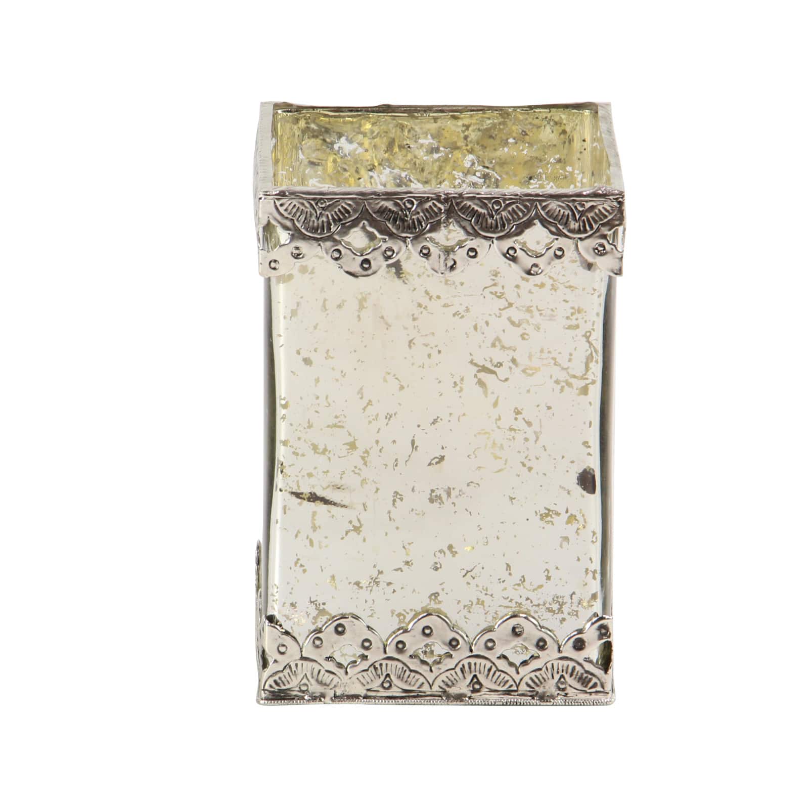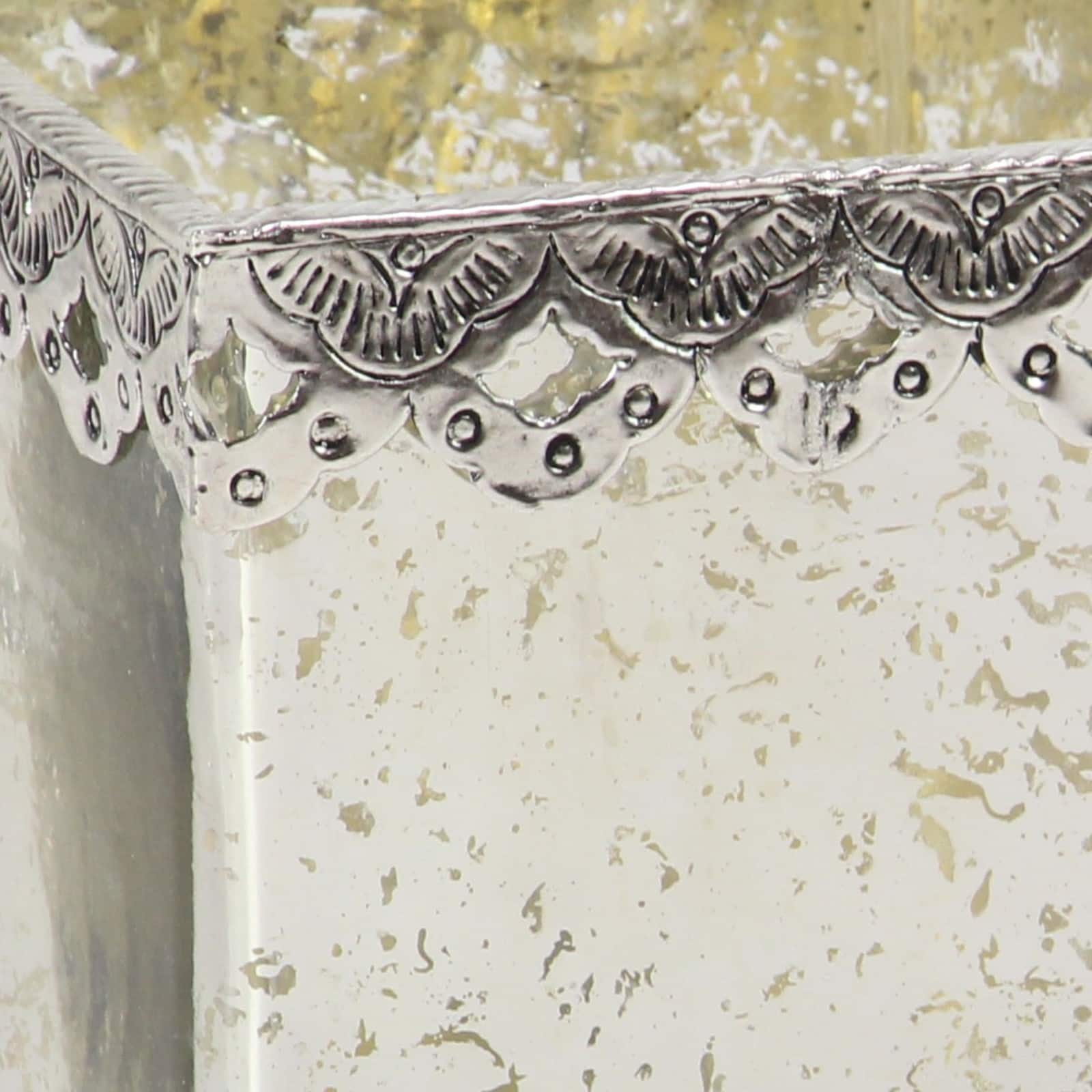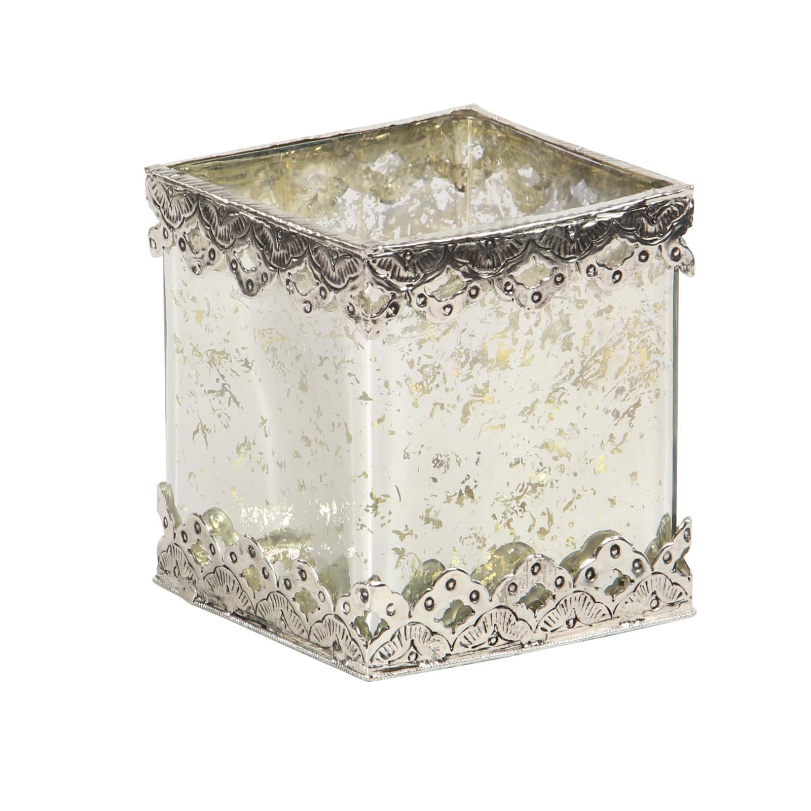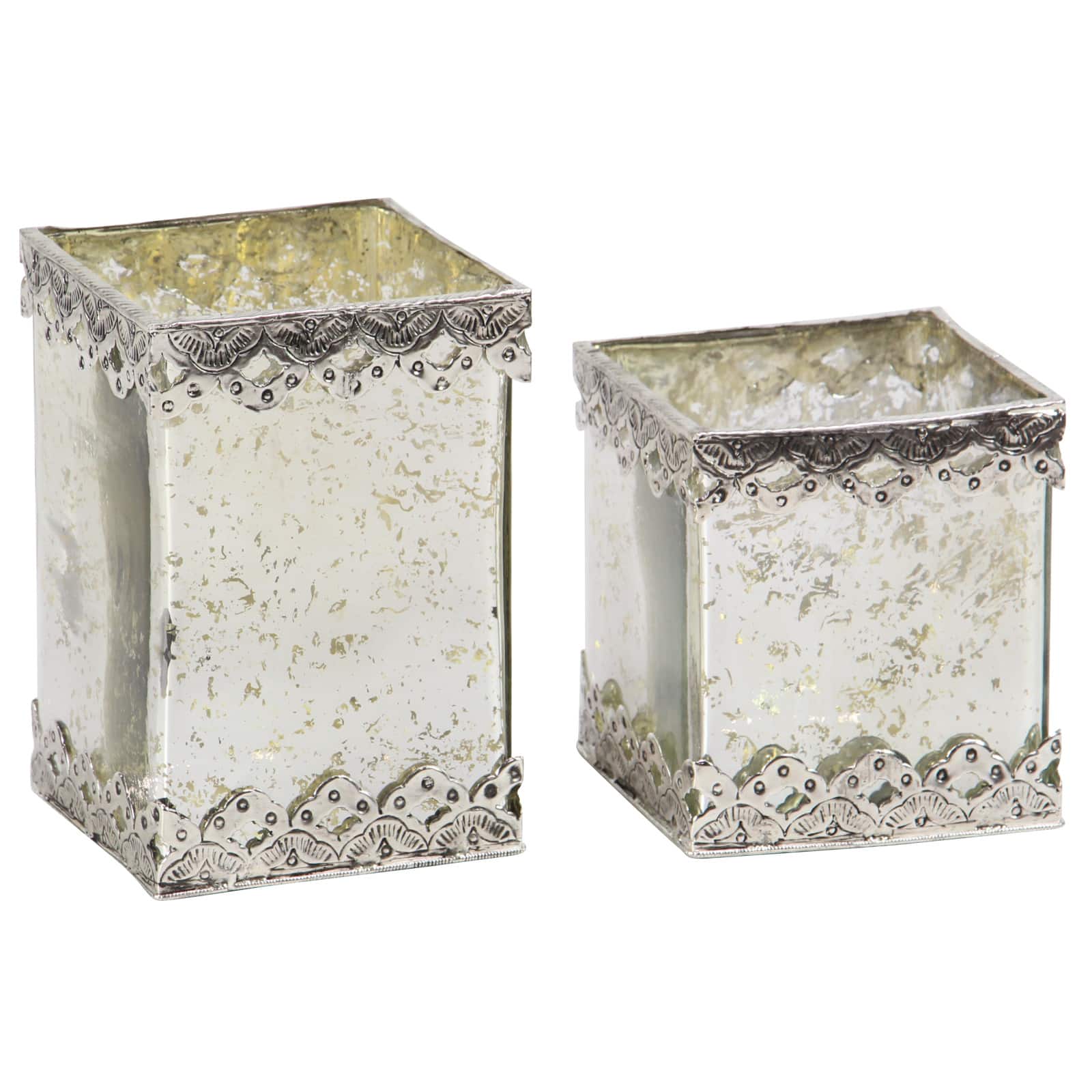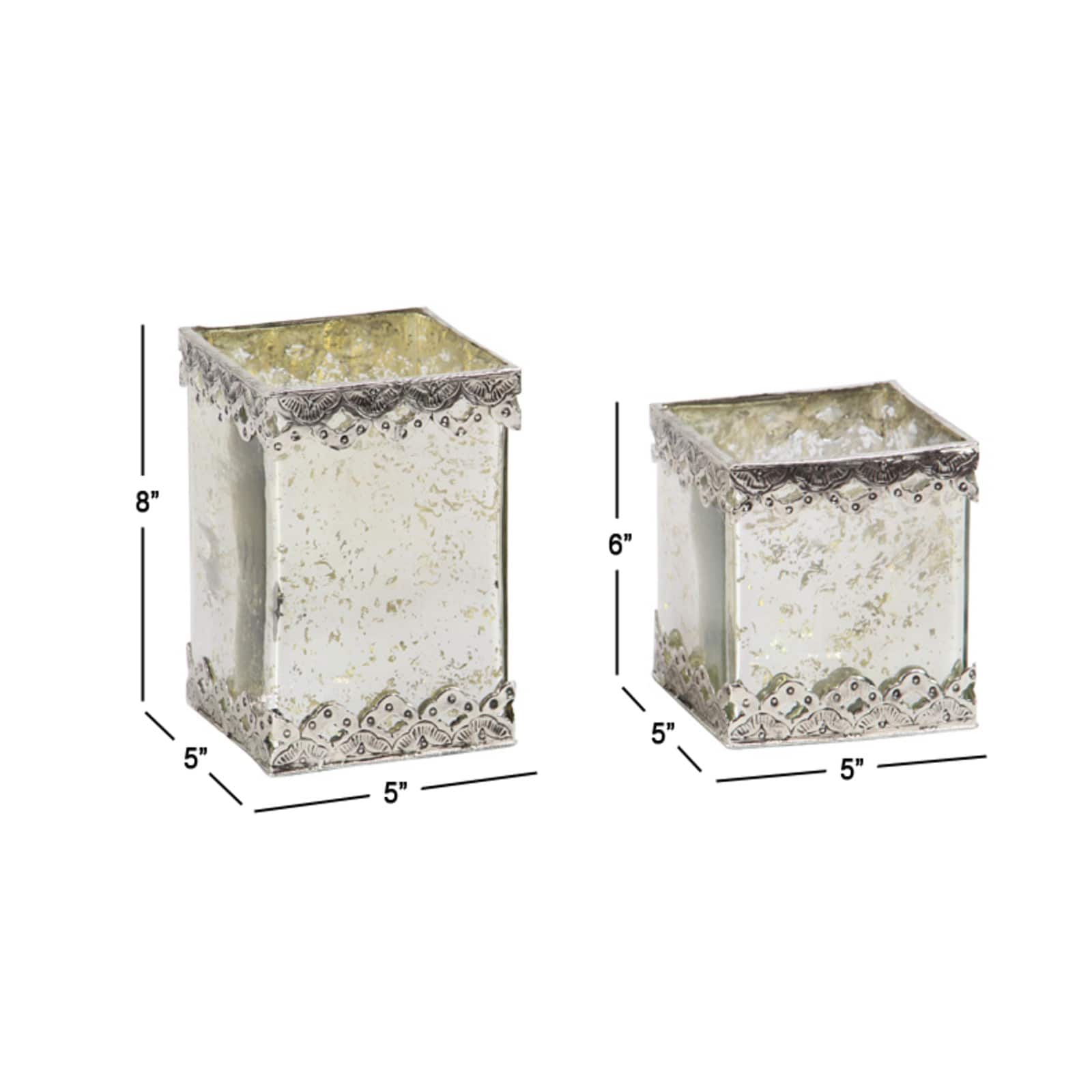 Set of 2 White Glass Glam Candle Holder, 6", 8"