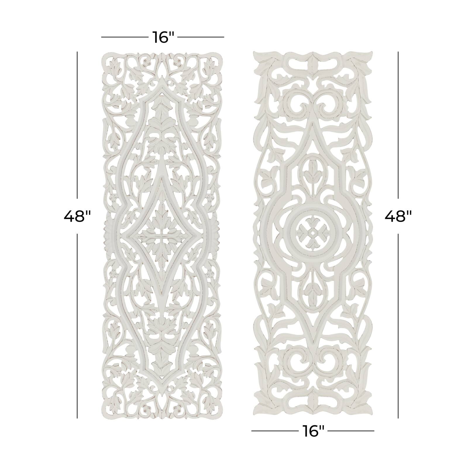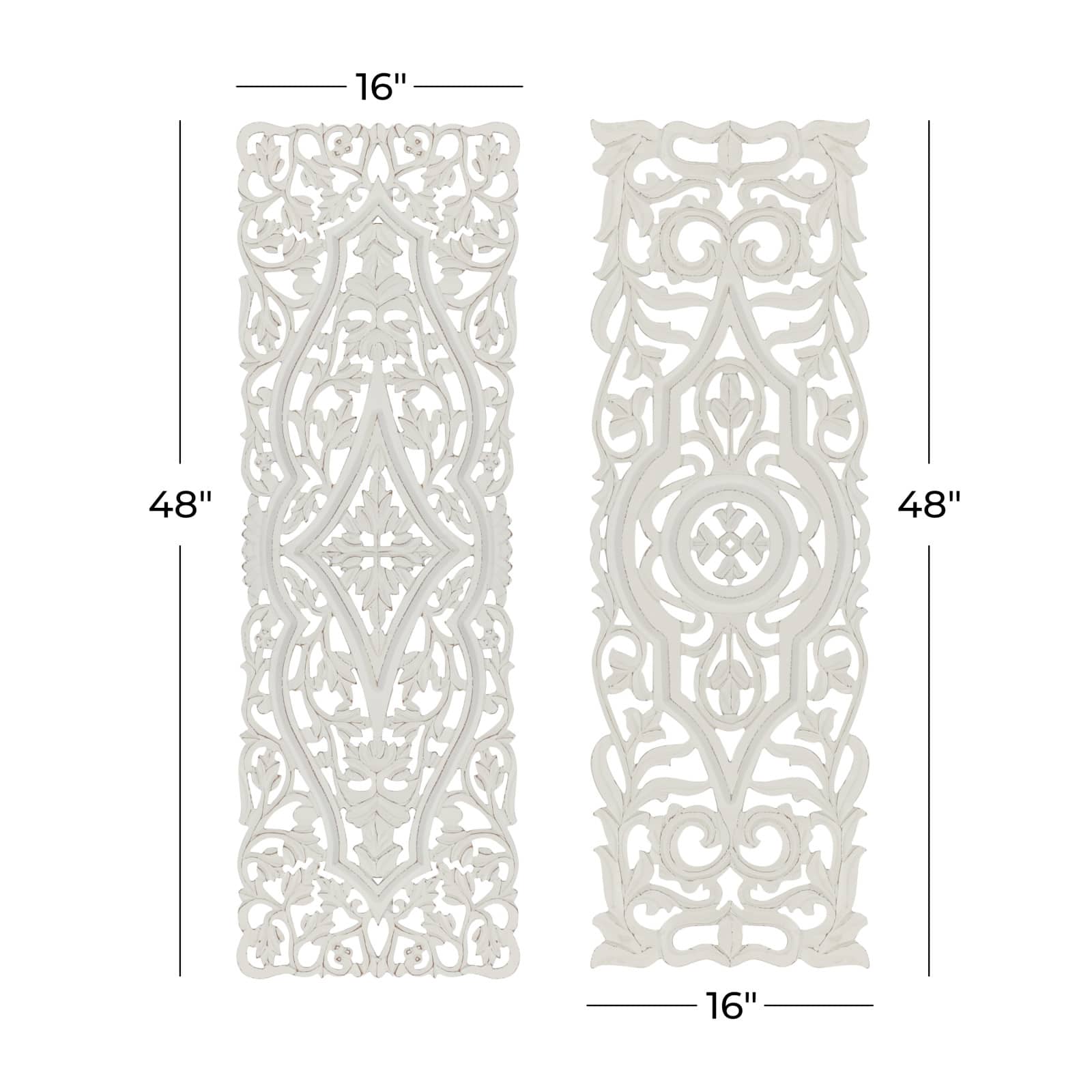 Set of 2 White Mango Wood Farmhouse Abstract Wall Decor, 16" x 48"
