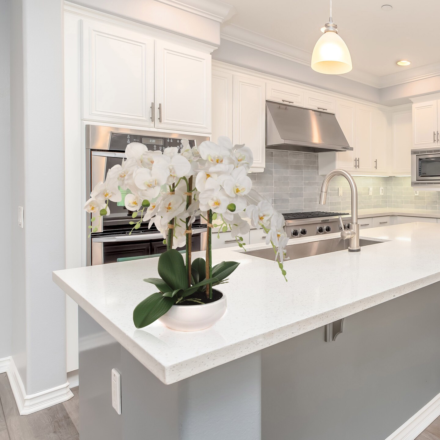 Set of 2: White Phalaenopsis Orchid Arrangement in White Ceramic Vase | 18-Inch | Lifelike Silk Flowers & Foliage | Table Centerpieces & Arrangements | Home & Office Decor