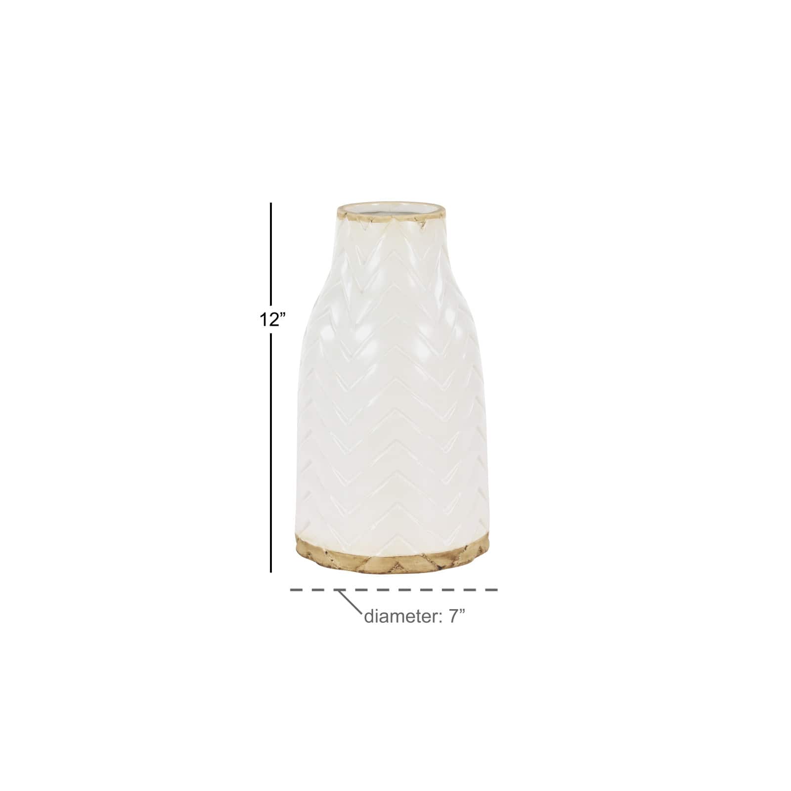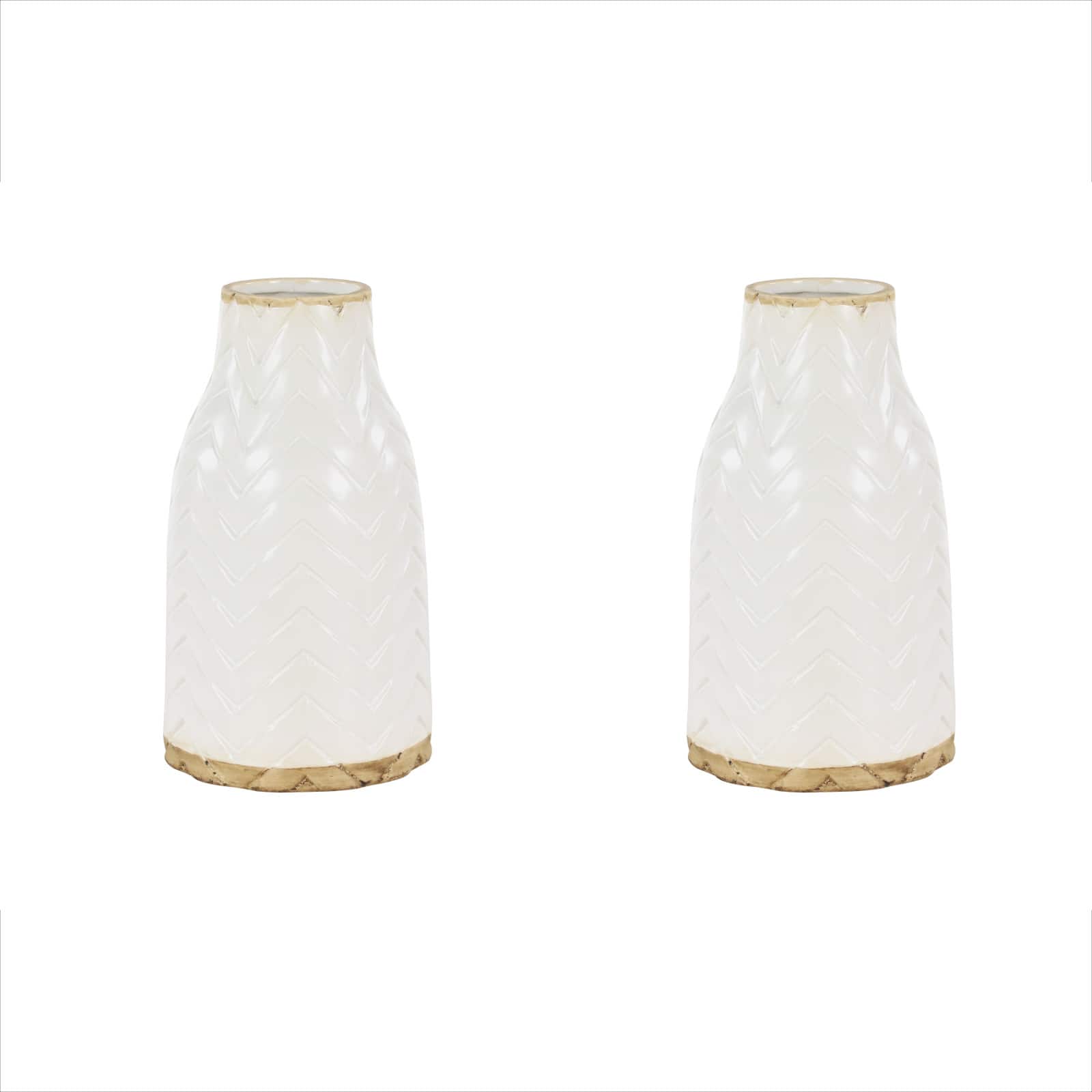 Set of 2 White Porcelain Contemporary Vase, 7" x 12"
