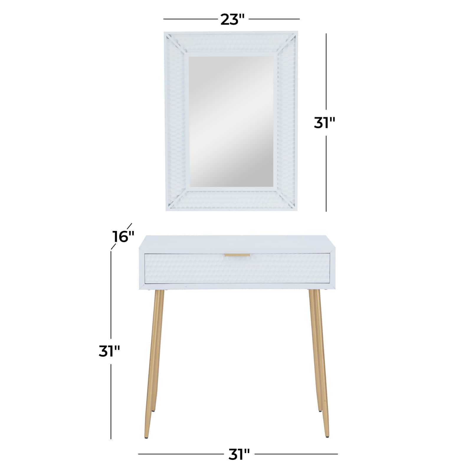 Set of 2" White Wood Contemporary Console Table with Mirror, 31" x 31" x 16"