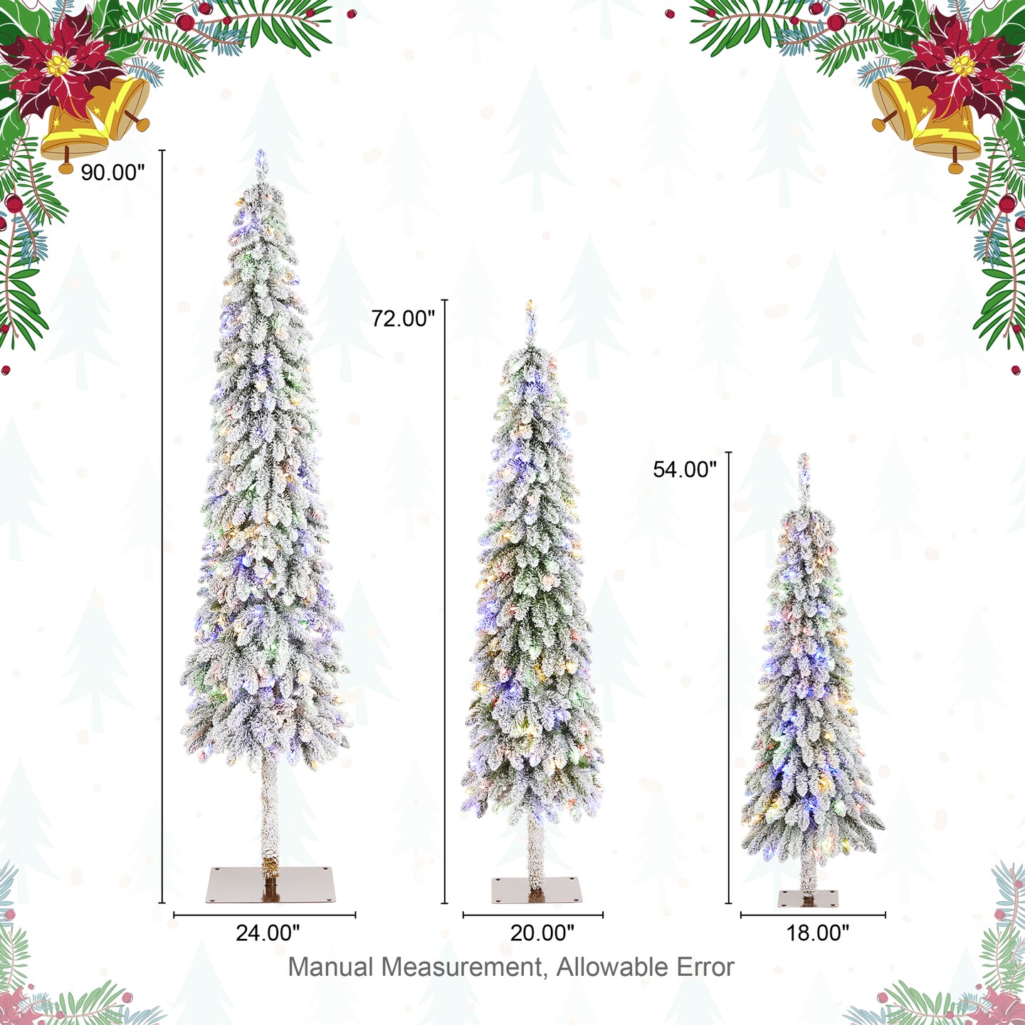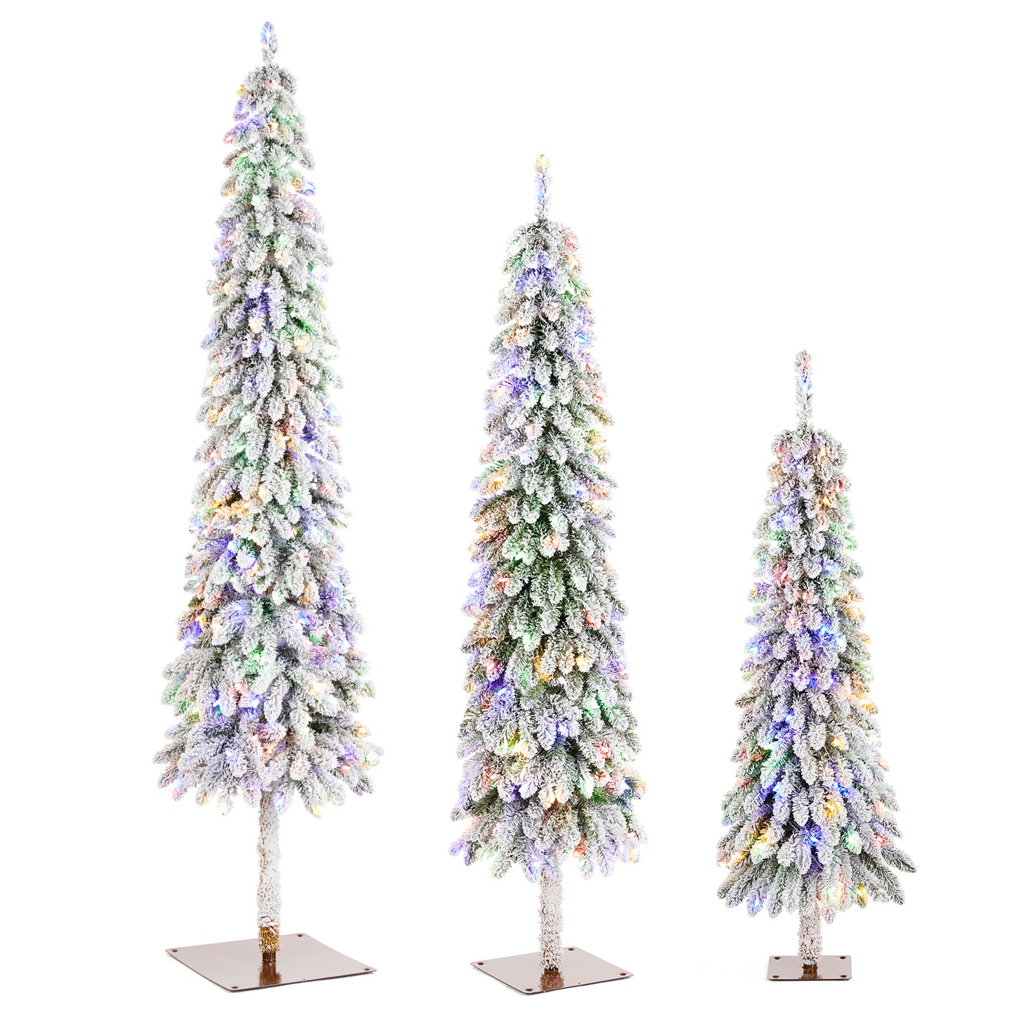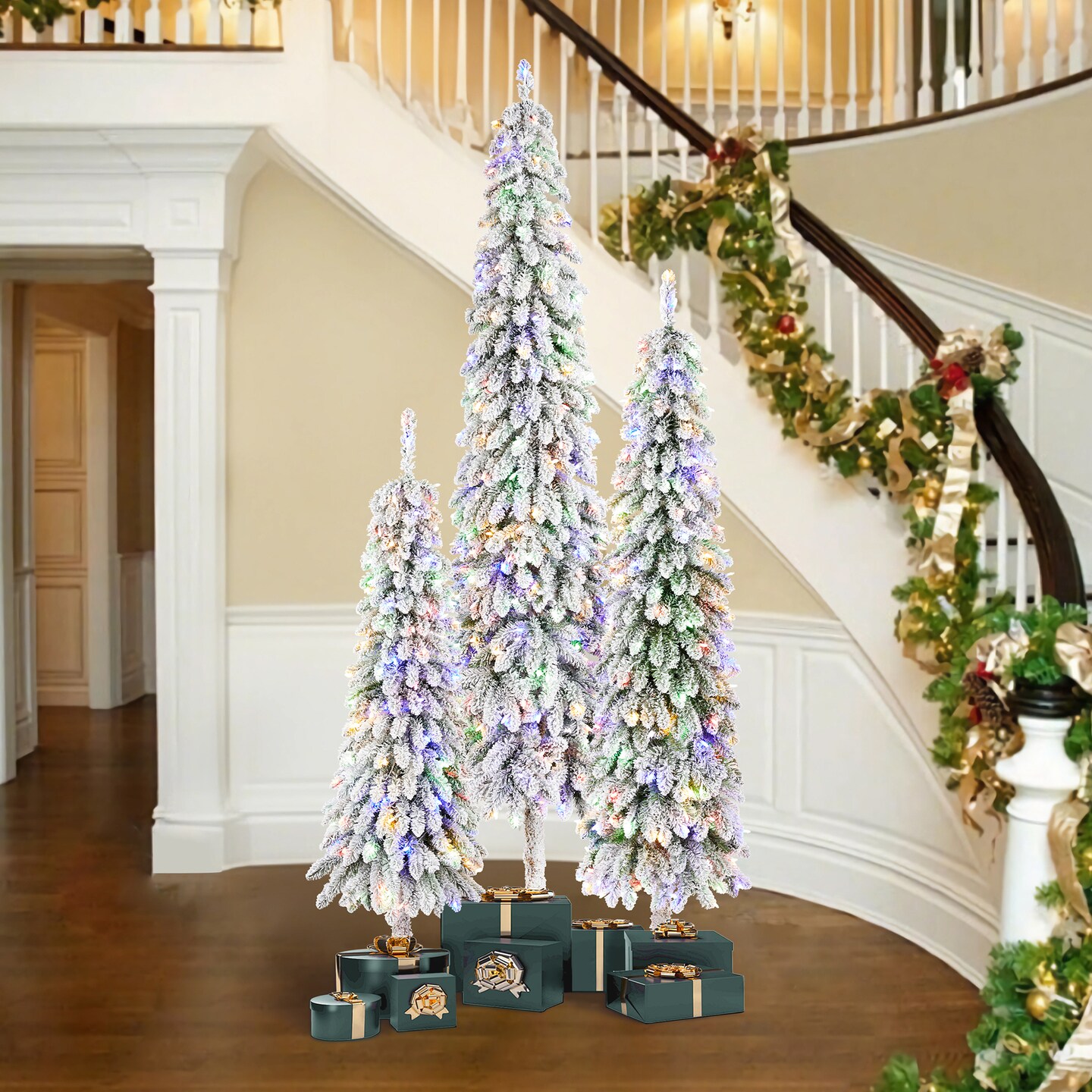 Set of 2/3 4.5/6/7.5FT Flocked Artificial Christmas Tree with C3 Clear LED Lights,9 function w/Foot Pedal