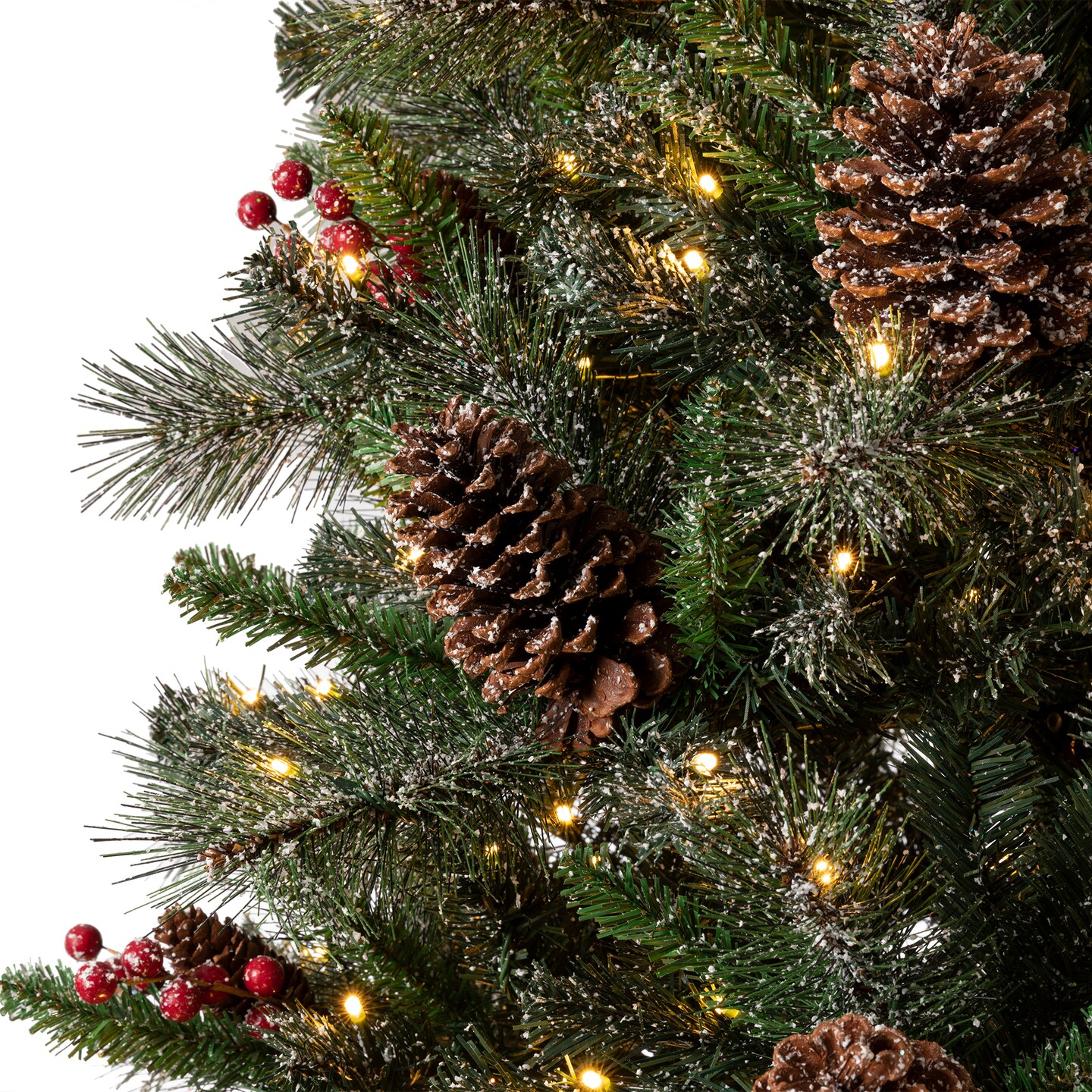 Set of 2/3 4ft/5ft/6ft Flocked Pinecone Christmas Potted Porch Tree With Warm White Lights